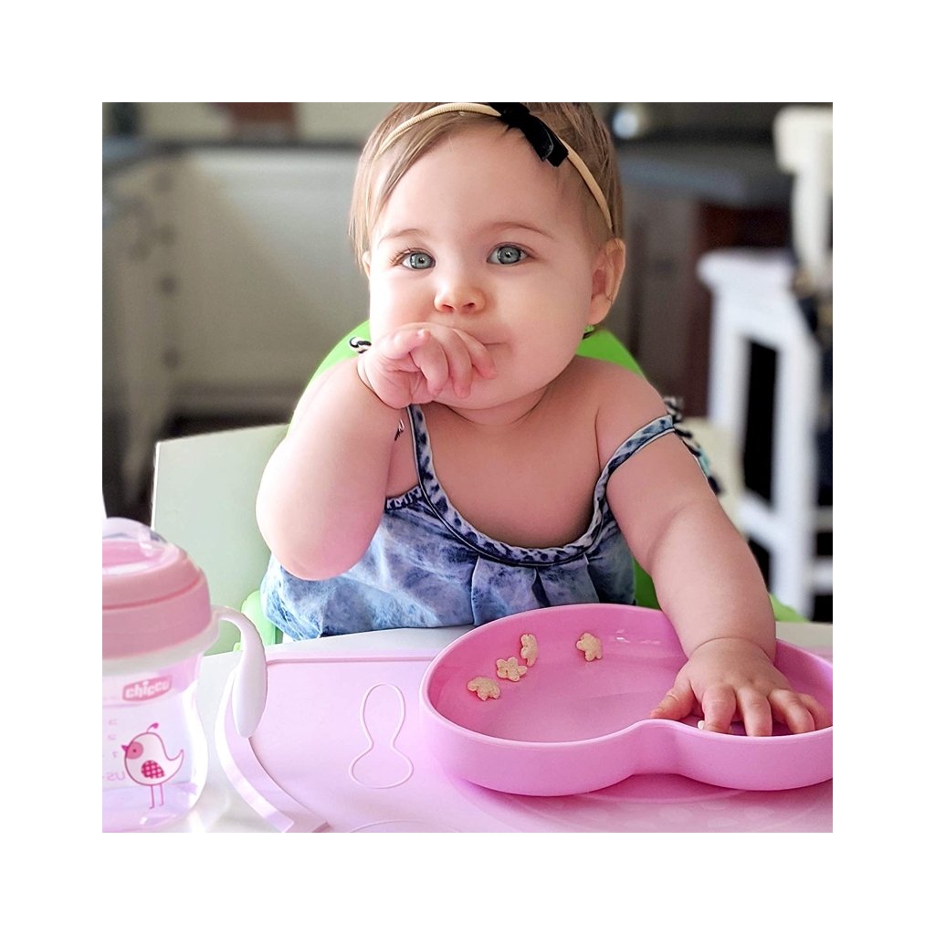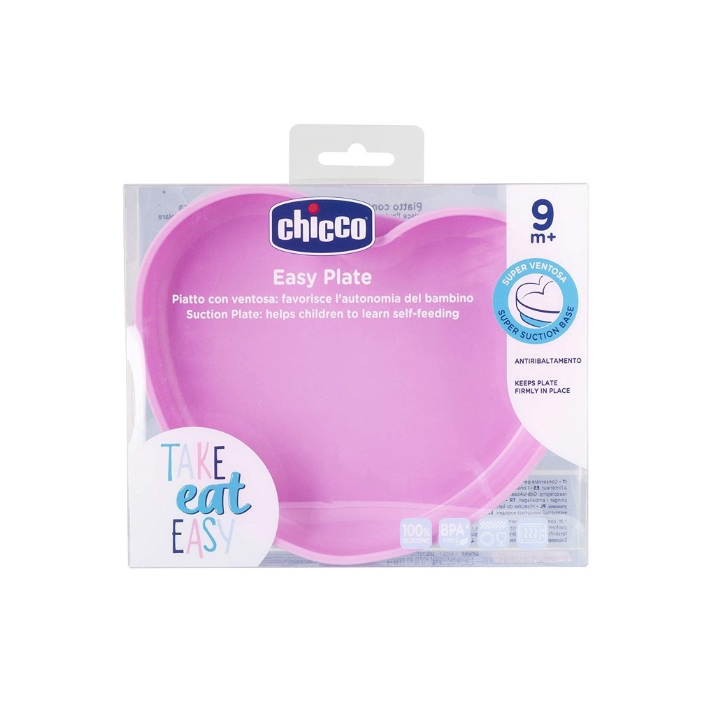 Silikónový tanier v tvare srdiečka z evolučnej rady Chicco Take Eat Easy určenej na dosiahnutie samostatnosti pri jedení je ideálny pomocník pre dieťa na ceste učenia sa jesť bez pomoci druhých.