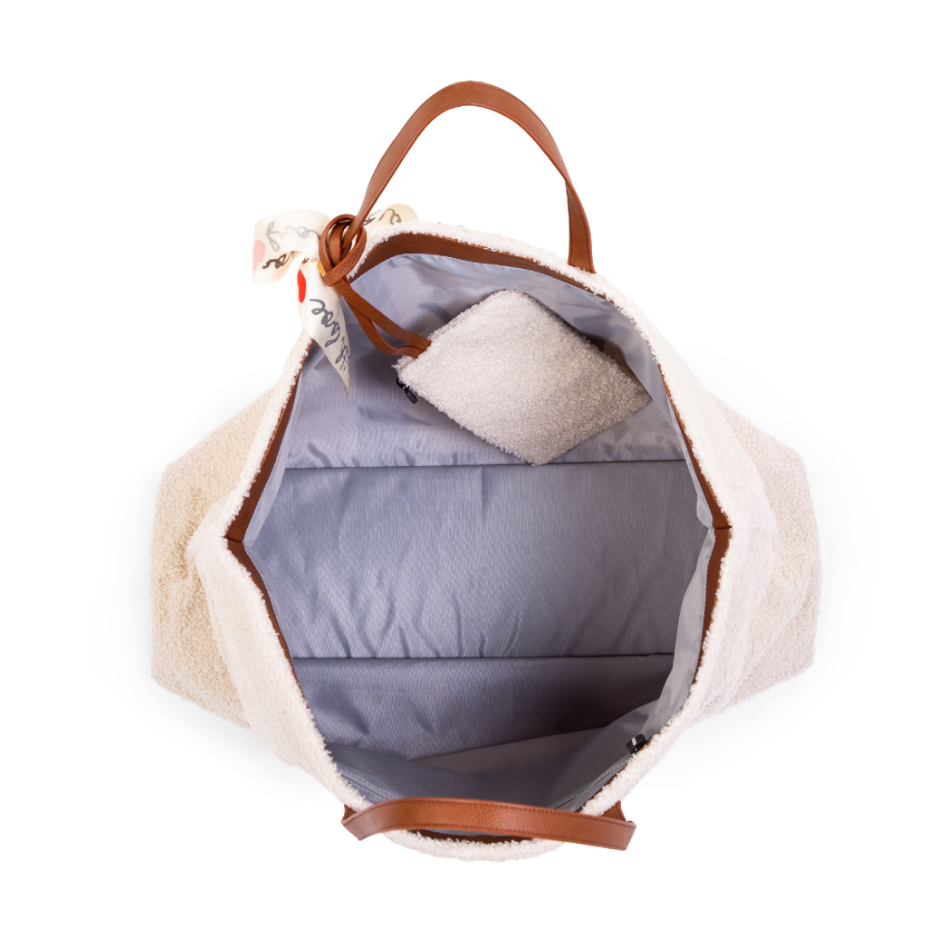 Taška je vyrobená z mäkkého plyšového materiálu s podšívkou.