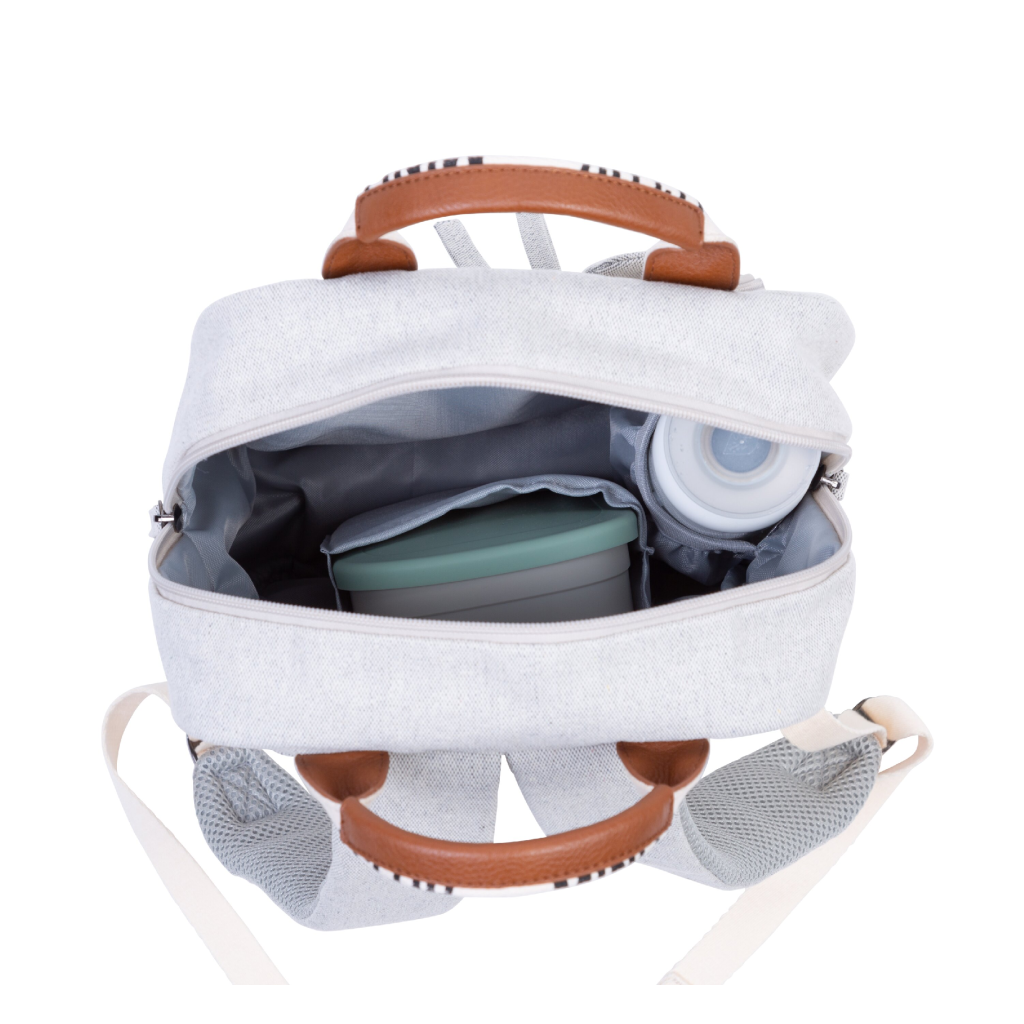 Štýlový batôžtek pre vaše dieťa Childhome Mini Club je svojou veľkosťou je ideálny pre deti od 3 do 5 rokov. Hlavný priestor batôžku je vybavený termoizolačným vreckom na nápoj a vreckom na desiatový box, predné vrecko na zips umožňuje bezpečné uloženie drobností.