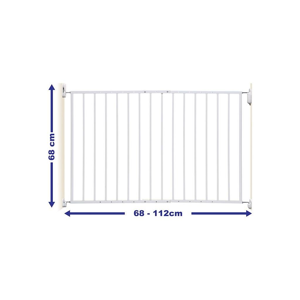 Táto 2-panelová vysúvacia zábrana sa hodí pre otvory od 68 do 112 cm a meria 68 cm na výšku. Šírka je ľahko nastaviteľná, aby sa zvýšila bezpečnosť pri používaní v hornej alebo dolnej časti schodiska. Vďaka dvojsmernému otváraniu (smerom dovnútra alebo von) je táto zábrana univerzálnym a praktickým doplnkom vášho rodinného domu.