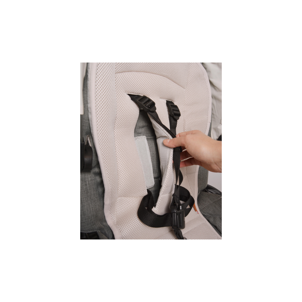 - Univerzálne uchytenie pre 5-bodové pásy, vhodná aj pre kočíky s pevnými pásmi vďaka suchému zipsu medzi otvormi