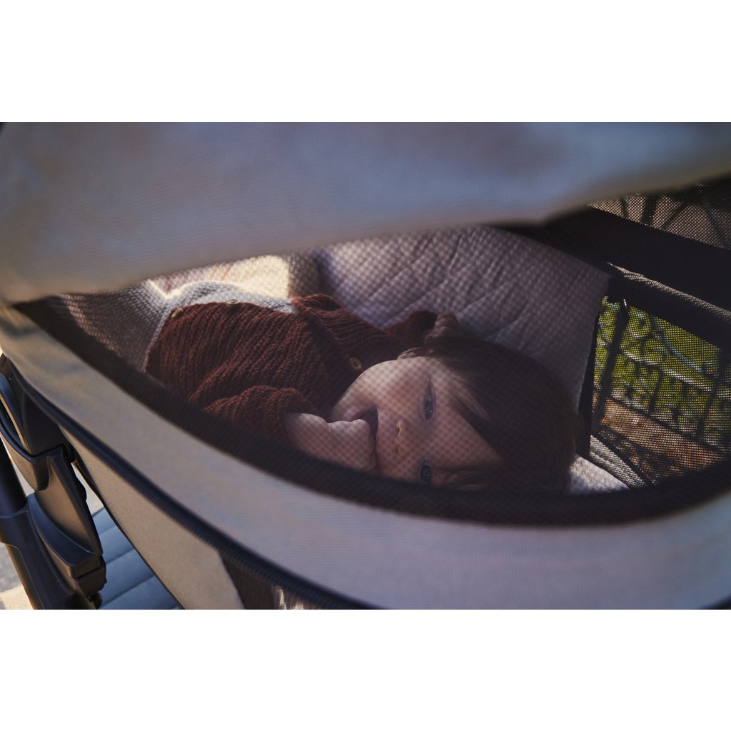Bez ohľadu na počasie sa nemusíte obávať. Vaše dieťa zostane v tieni alebo pekne v suchu vďaka extra veľkej strieške Harvey s okienkom a štýlovým koženým detailom, ktoré poskytujú UPF 50 ochranu pred slnkom a je vodoodpudivá.