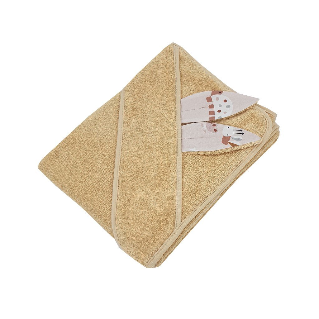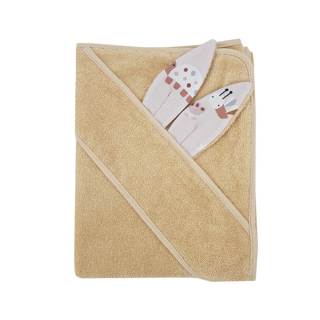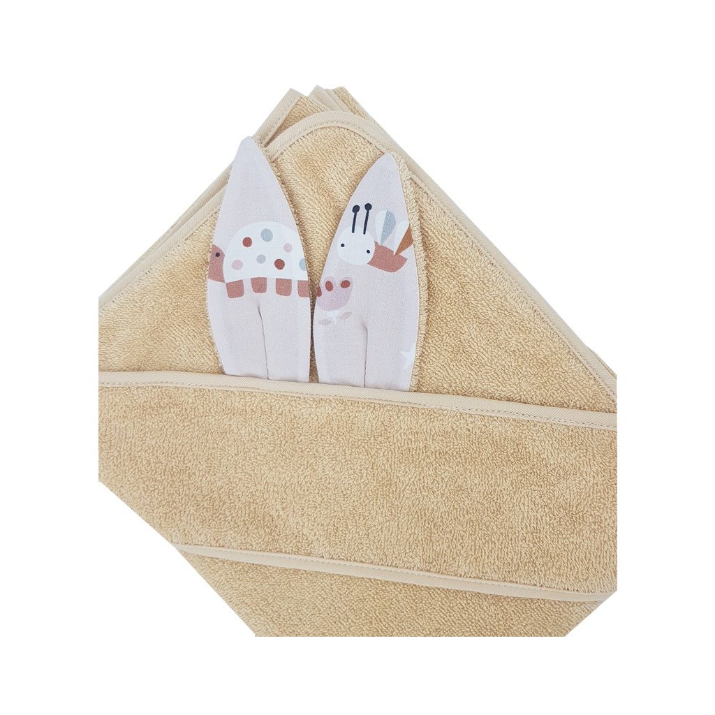 EKO Osuška na kúpanie s uškami bavlnená Bees Beige 100x100 cm