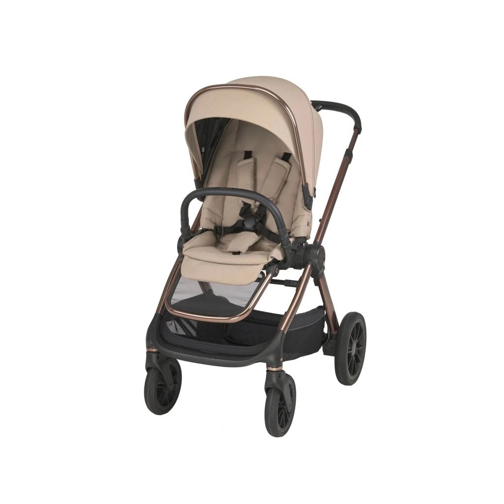 Pre každý terén, vďaka vynikajúcemu odpruženiu [na rodičovské vzostupy a pády]. Stabilizátor otrasov vaničky [na všetky nerovnosti rodičovstva]. B Gelové kolesá vyrobené z materiálu EVA, pokryté vrstvou gumy, ktorá zlepšuje priľnavosť. Inteligentná brzda, ktorá nepoškodí obuv. Priestranný košík s prídavnou veľkou taškou typu shopper a uzatvárateľnou kapsou [na všetky kamene a klacky, ktoré staršie dieťa nazbiera a prinesie domov].