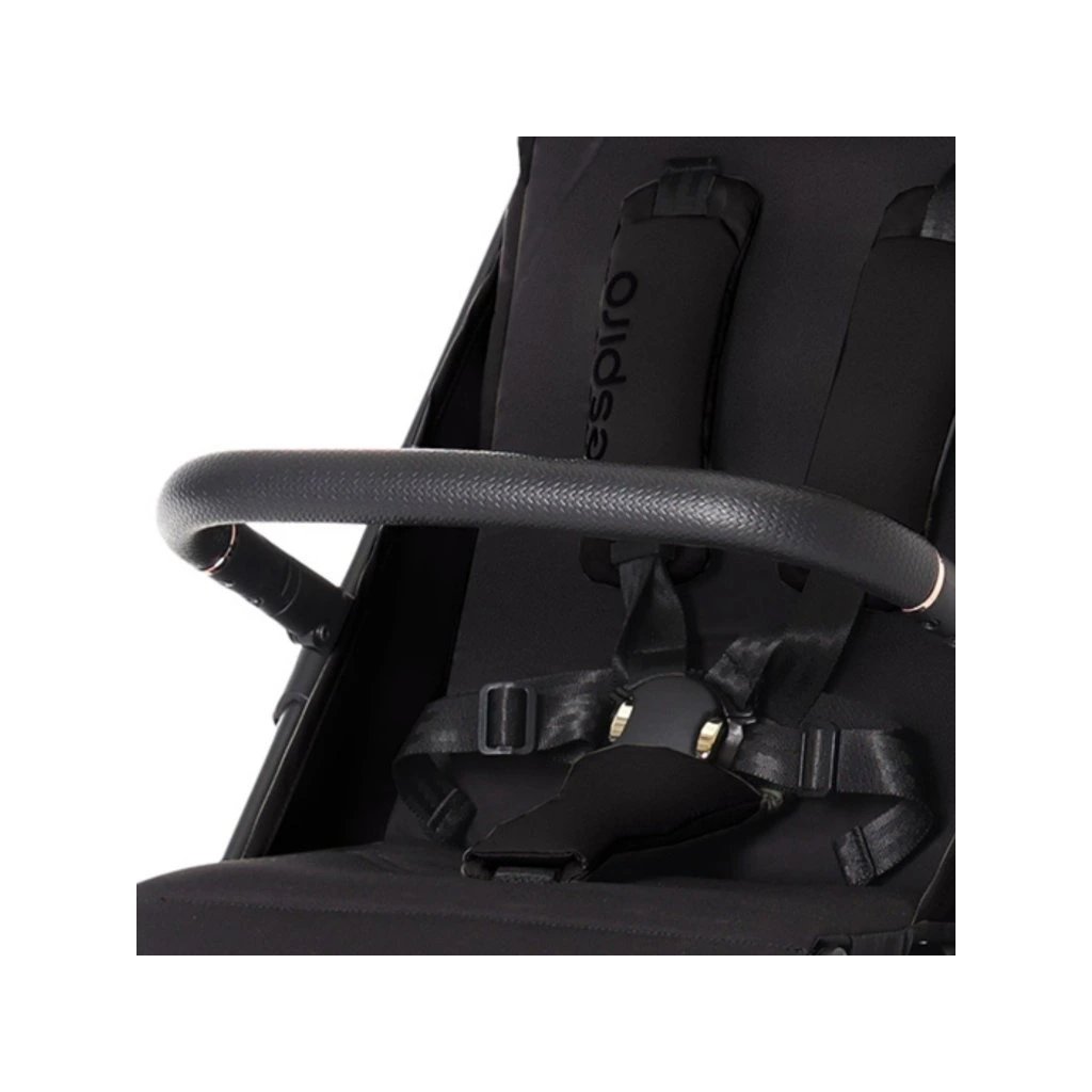 Bezpečnosť – zaručujú 5-bodové bezpečnostné pásy zapínané magnetickou prackou, samostatný brzdový a uvoľňovací systém a použitie reflexných prvkov