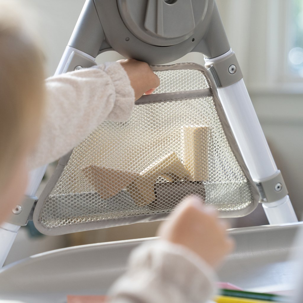 Narodilo sa vám druhé dieťa? Táto stolička dokáže poslúžiť dvom deťom naraz v 6 rôznych kombináciách v režimoch hojdacie kreslo, stolík, veža a nadstavba na stoličku. Pre najmenších zaručuje ergonomický dizajn 90-90-90 správne držanie tela – členky, kolená a bedrá v pravom uhle pre lepšie trávenie počas jedla. Päťbodový bezpečnostný pás udrží dieťa v bezpečí. Ako dieťa rastie, stále oceníte funkcie ako 3-polohový pultík s vložkou vhodnou do umývačky riadu a odkladací priestor pod sedadlom. Keď sa z dieťatka stane batoľa, obľúbené hračky a potreby na tvorenie si môže uložiť do praktických úložných vreciek na bočnej strane stolíka. Súčasťou je aj odnímateľná lavica ako ďalšia možnosť sedenia.