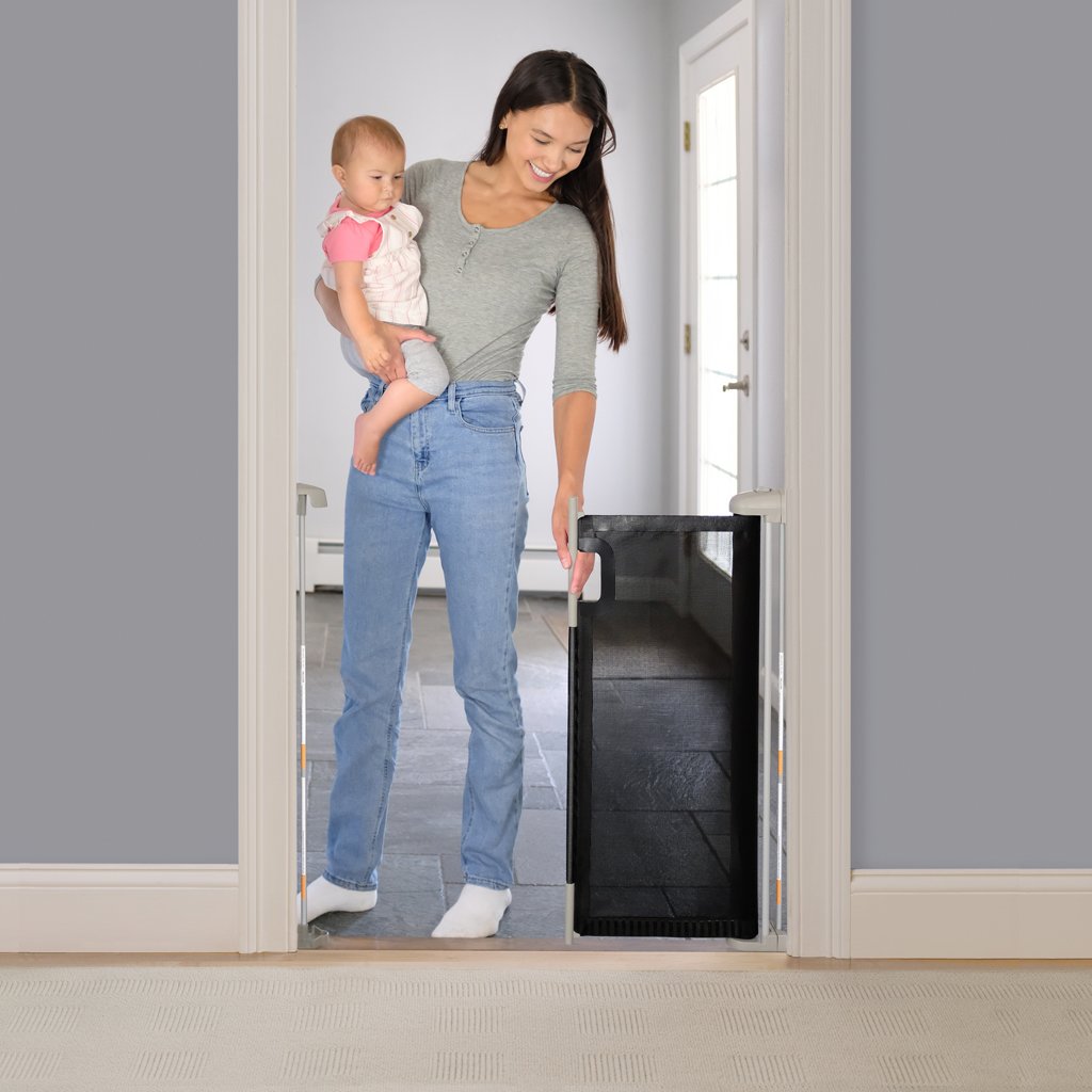 Bezpečnosť, ktorú si ani nevšimnete, až kým ju nebudete potrebovať. S rolovacou zábranou od Ingenuity Thruway 52W Series ochránite svoje dieťa alebo domáceho miláčika štýlovo a prakticky. Zábrana má výšku 76 cm a pokrýva priechody až do šírky 132 cm. Keď ju nepotrebujete, jednoducho sa schová do kompaktného držiaka a nenaruší vzhľad vášho domova. Čierna priedušná sieťovina je priehľadná, takže máte vždy prehľad o tom, čo sa deje na druhej strane. Unikátny mechanizmus Tuck Away zabezpečí rýchle rozloženie aj zloženie, a automatické zamykanie po zatvorení poskytuje maximálny pocit bezpečia bez ďalších úkonov. Zábrana bola nezávisle testovaná a schválená z hľadiska bezpečnosti a je ideálnym riešením pre rodičov aj majiteľov domácich zvierat, ktorí chcú bezpečný domov bez kompromisov v štýle.
