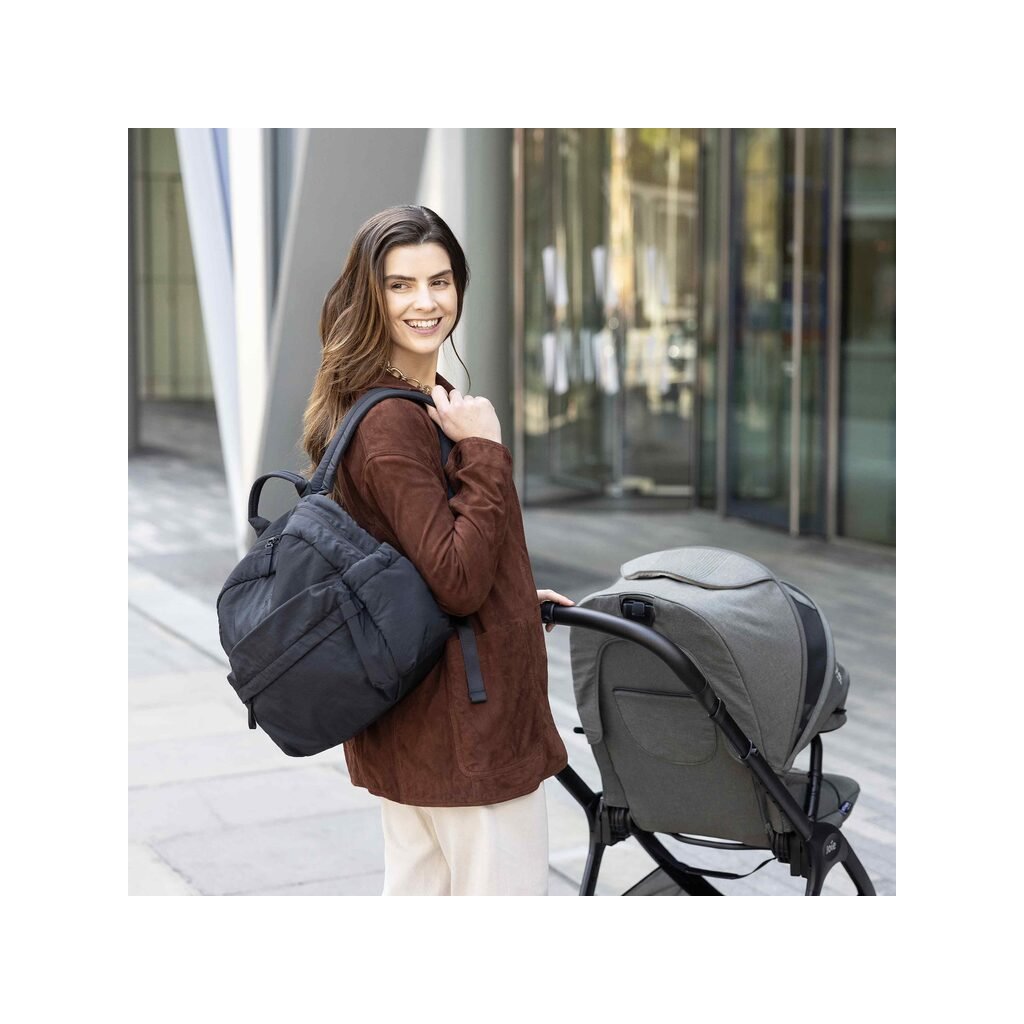 Súčasťou balenia je umývateľná prebaľovacia podložka na prebaľovanie na cestách. Predné vrecko na zips uľahčuje prístup k veciam, ktoré chcete mať vždy po ruke. Materiál odpudzuje vodu a chráni obsah batohu aj pri nepriaznivom počasí.