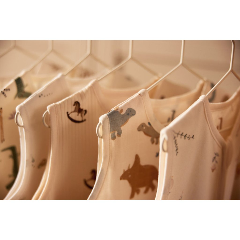 Ľahký spací vak z jemnej 100% bavlny má zips na prednej strane pre ľahké vloženie dieťaťa do spacieho vaku aj prebaľovanie počas spania.