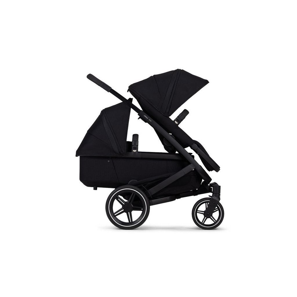 S druhým dieťaťom na cestě je tiežvyžadovaná nová porcia flexibility. Najnovšia jazda s Joolz pôjde rovnako hladko aj s dvoma deťmi. Kočík je možné ľahko prispôsobiť kombinácii Duo verzie, aby ste mohli na prechádzku vyraziť s oboma Vašimi malými deťmi. Úzky priechod vo Vašej obľúbenej kaviarni? Bez obáv! Kočík zostáva stále kompaktný! Deti sedia nad sebou aj pri zachovaní ich pohodlia.