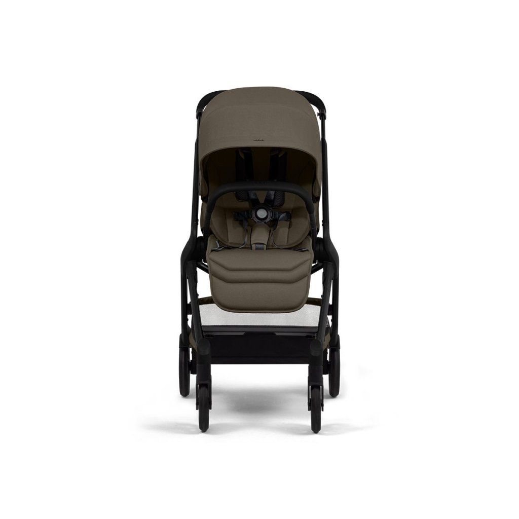 Pri skladaní si môžete vybrať, či potrebujete, aby sedátko smerovalo smerom k vám, alebo von smerom do sveta. Prenosnosť a ľahkosť kočíka je kľúčová, a preto je tu praktický popruh na prenášanie. Môžete si ho prehodiť cez rameno a vyjsť po schodoch s oboma rukami voľnými. Vieme, že hmotnosť s obyčajnými 9 kg oceníte s úsmevom na vašej tvári. Sme jedni z najľahších v segmente kompaktných kočíkov!