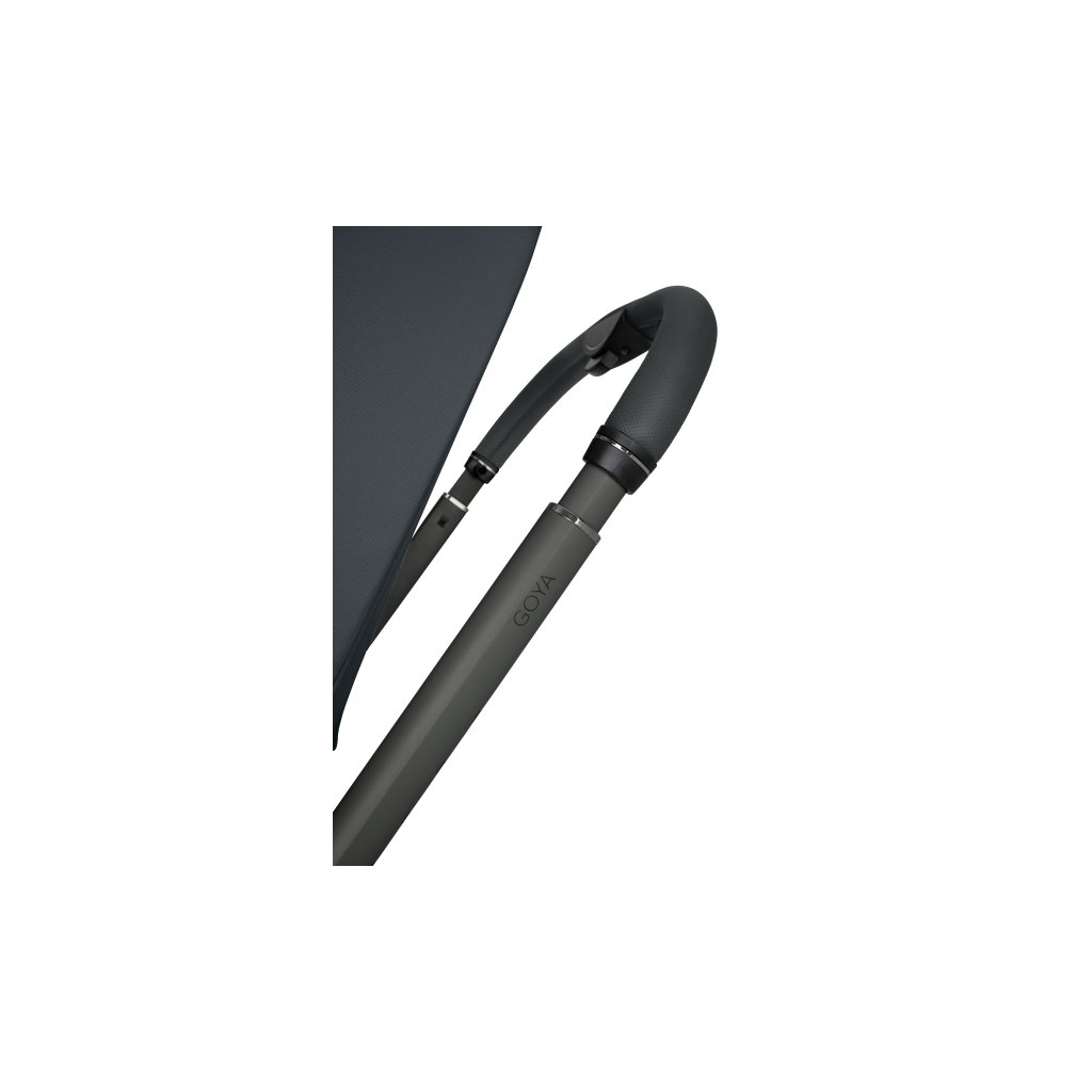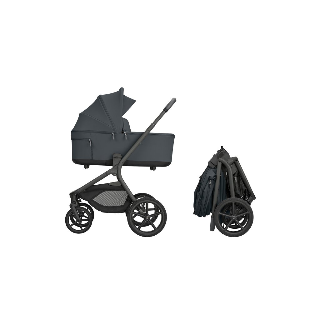 Po zložení kočík samostatne stojí. Pre ľahké prenášanie je pripravený popruh cez rameno a madlo.