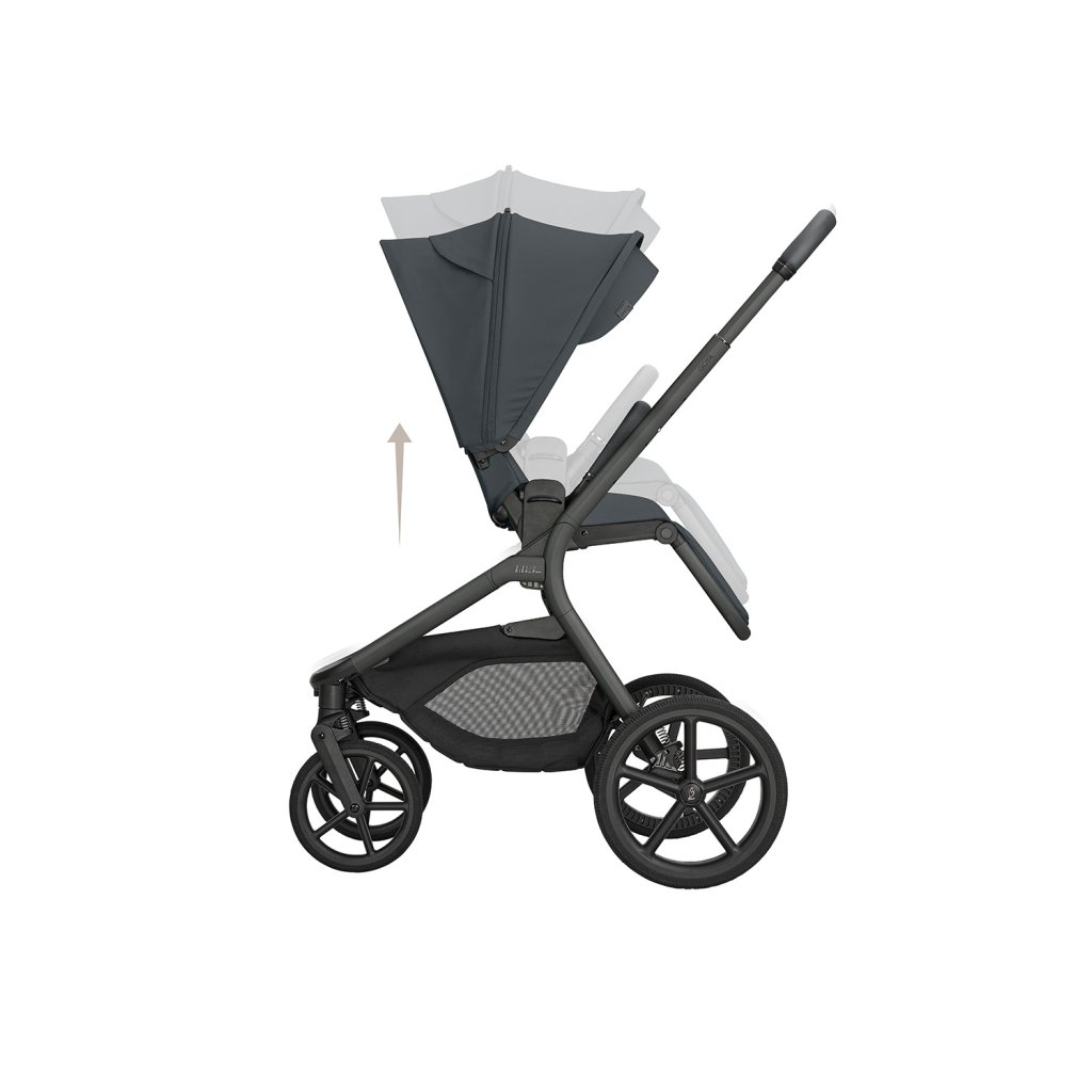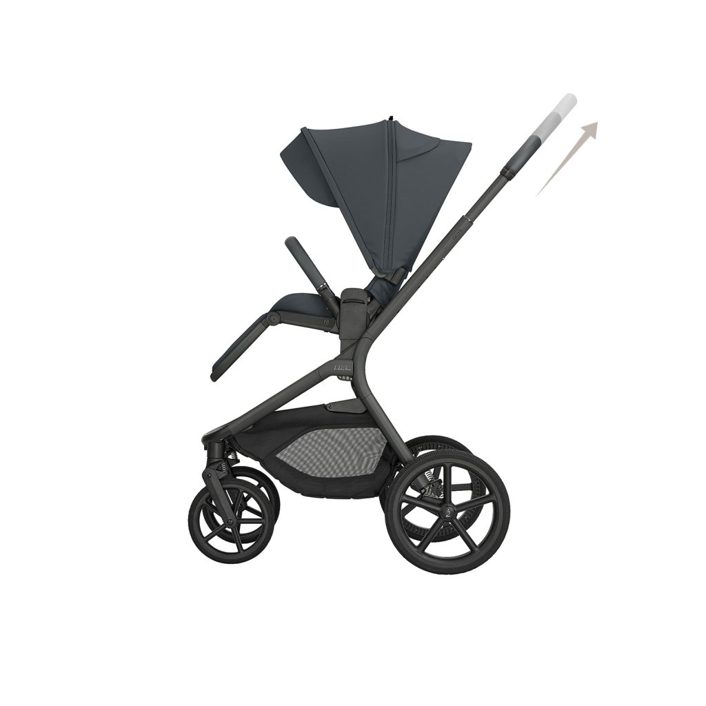 Športové sedenie je možné nasadiť po aj proti smeru jazdy a vďaka tlačidlám s pamäťou ho uvoľníte z podvozku pohodlne jednou rukou. Výšku sedenia môžete nastaviť do dvoch polôh pre prispôsobenie kočíka podľa výšky rodiča. Odnímateľné madlo pred dieťaťom je otočné o 360 ° pre ľahkú manipuláciu s dieťaťom a potiahnuté príjemnou ekokožou.