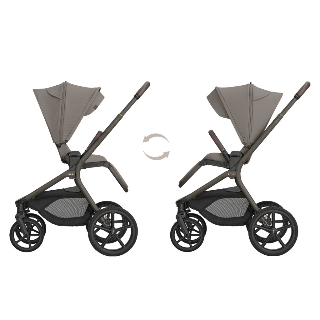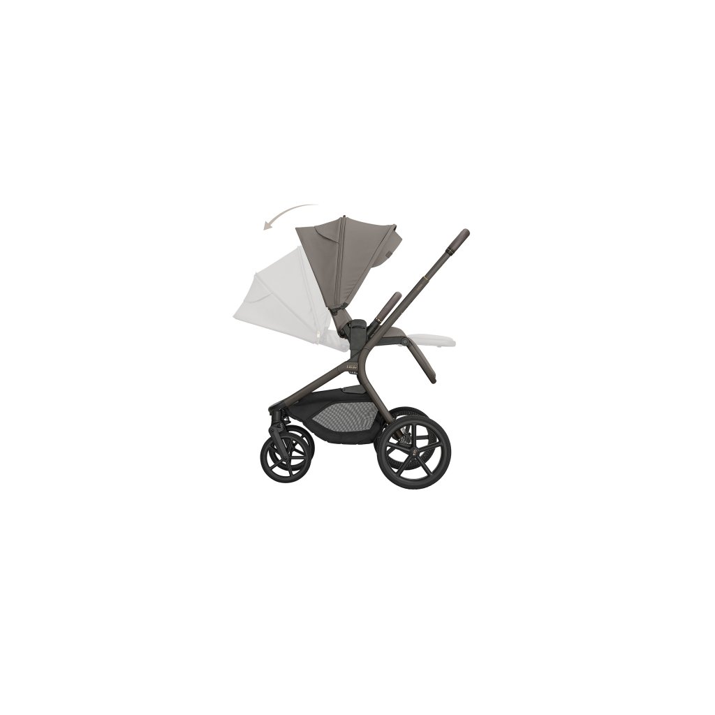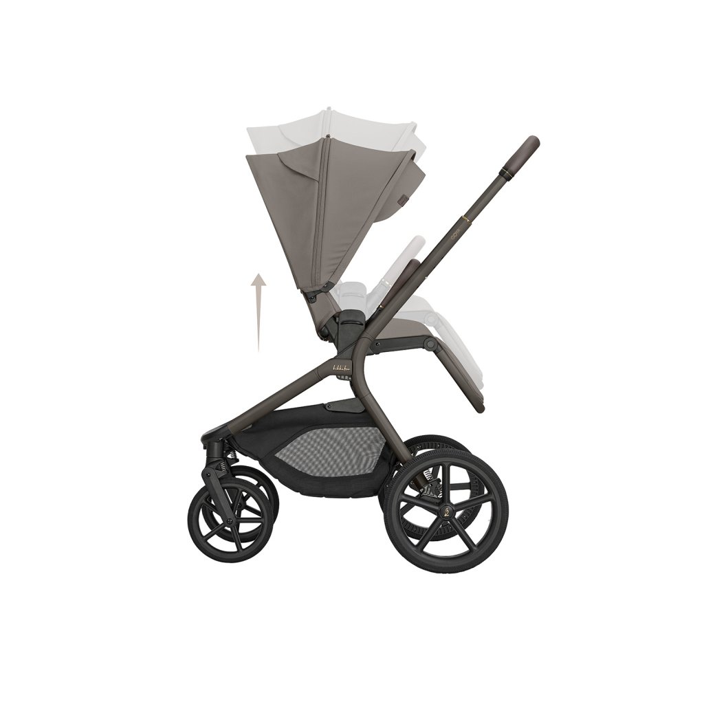 Športové sedenie je možné nasadiť po aj proti smeru jazdy a vďaka tlačidlám s pamäťou ho uvoľníte z podvozku pohodlne jednou rukou. Výšku sedenia môžete nastaviť do dvoch polôh pre prispôsobenie kočíka podľa výšky rodiča. Odnímateľné madlo pred dieťaťom je otočné o 360 ° pre ľahkú manipuláciu s dieťaťom a potiahnuté príjemnou ekokožou.