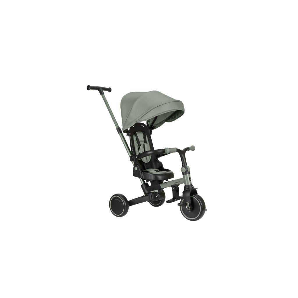 Pre maximálne bezpečie je trojkolka vybavená 5-bodovým pásom, odnímateľným bezpečnostným madlom a nastaviteľnou strieškou, ktorú je možné podľa potreby odňať. Nechýba sklápacia opierka chrbta nastaviteľná do 4 polôh, nastaviteľné riadidlá a otočné sedátko.