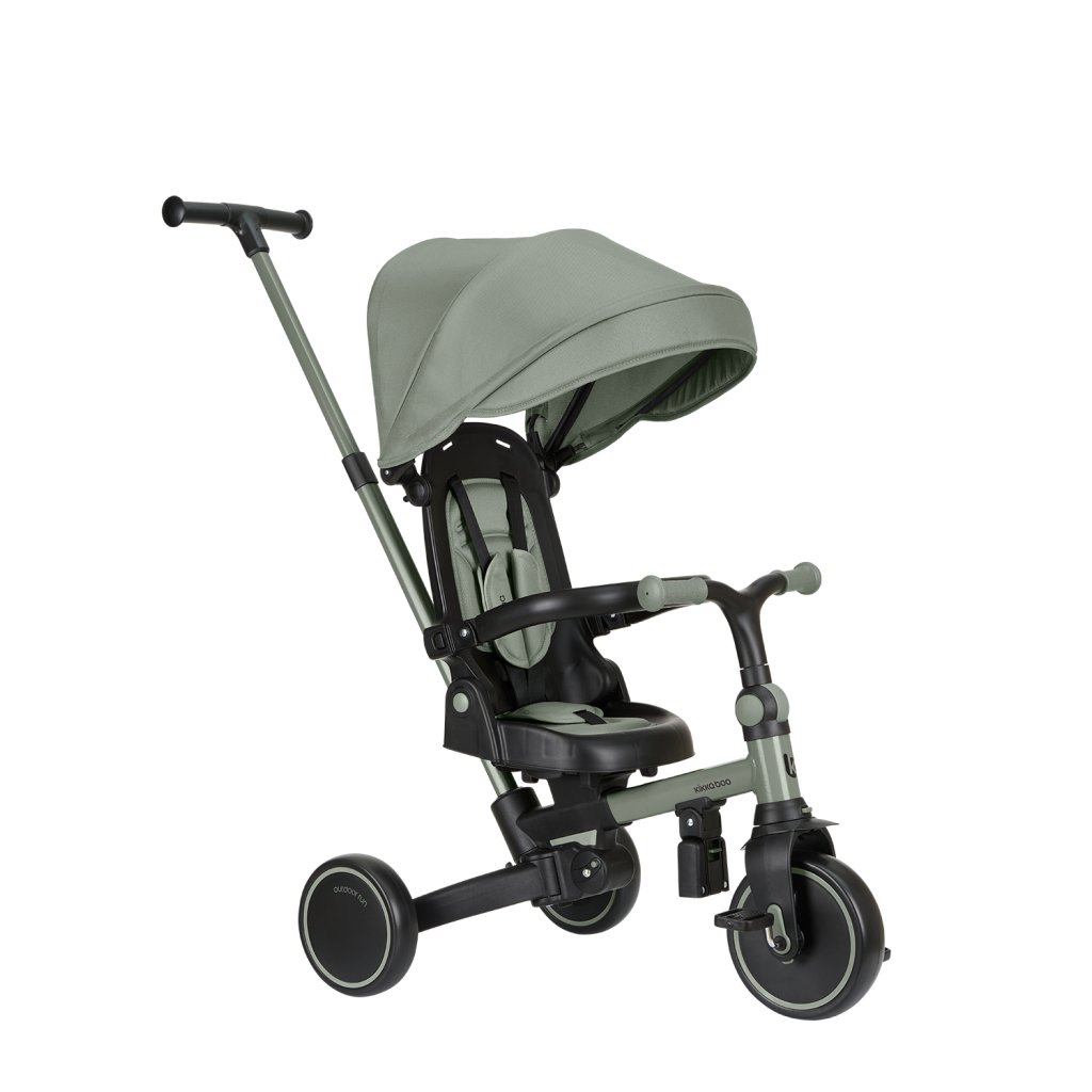 Multifunkčná trojkolka KikkaBoo Aluma 8v1 je navrhnutá tak, aby dieťaťu slúžila naozaj dlho – od 12 do 60 mesiacov. V začiatkoch funguje v bezpečnom „kočíkovom“ režime s vedením rodičom, postupne prechádza do samostatnej jazdy ako trojkolka s pedálmi a odrážadlo. Vďaka skladaciemu prevedeniu a šikovným detailom je ideálny aj na cestovanie.