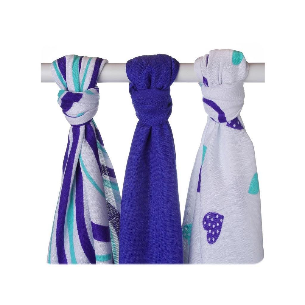 KIKKO Plienky bambusové Hearts&Waves 70x70 cm, ocean blue 3 ks