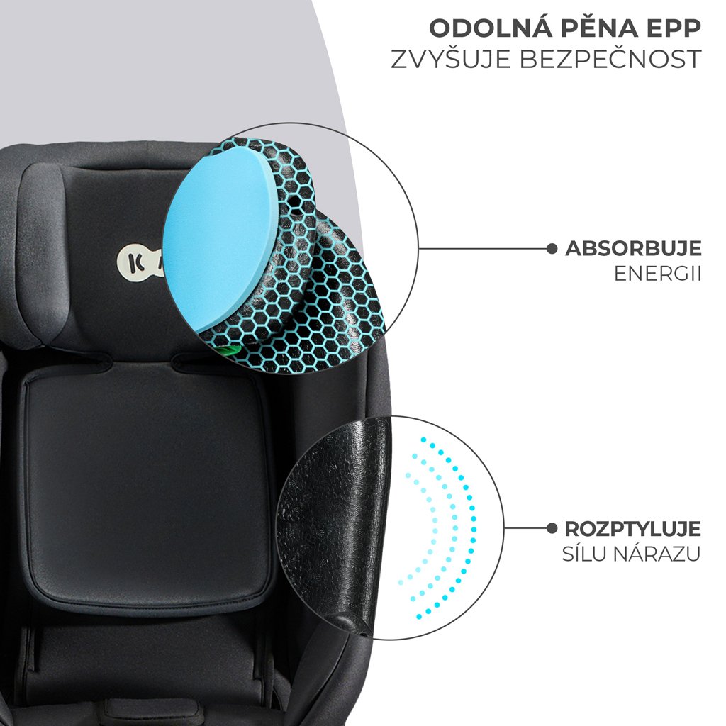 Penový polypropylén (EPP) je známy najmä vďaka svojim vynikajúcim vlastnostiam pohlcovania energie a odolnosti voči mechanickému poškodeniu. Už mnoho rokov sa používajú v automobilovom priemysle na výrobu vnútorných komponentov automobilov (napr. výplne sedadiel a sedadiel, výplne dverí, čalúnenie stropu) ako tlmiaci materiál a na splnenie najprísnejších bezpečnostných požiadaviek. Ich používanie znižuje riziko zranenia v prípade nehôd. Z tohto dôvodu sa tento materiál používa v škrupine sedadla XRIDER i-Size na komplexnú ochranu malého cestujúceho. Vďaka EPP pene je škrupina autosedačky veľmi pevná a odolná. Práve škrupina je navrhnutá tak, aby znižovala silu nárazu a chránila dieťa pred zranením, preto je jej odolnosť taká dôležitá. EPP sa tiež nedeformuje vplyvom rôznych poveternostných podmienok, ktorým je sedačka vystavená, a zároveň je odolný voči vlhkosti. To všetko znamená, že autosedačka XRIDER i-Size zabezpečí bezpečnosť vášho dieťaťa na dlhé roky. Okrem toho skutočnosť, že EPP možno recyklovať, je súčasťou snahy o udržateľnejší a ekologickejší prístup k výrobe a používaniu materiálov.