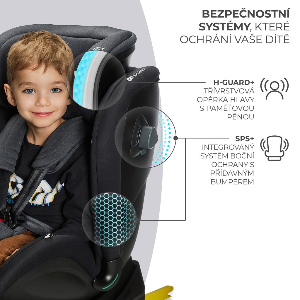 XRIDER i-Size má dva špeciálne bezpečnostné systémy navrhnuté na lepšiu a presnejšiu ochranu vášho dieťaťa počas jazdy. Autosedačka je vybavená systémom H-GUARD+, zosilnenou 3-vrstvovou opierkou hlavy z EPP (expandovaný polypropylén) s dodatočnou pamäťovou penou - kombinácia týchto dvoch materiálov zabezpečuje najvyššiu úroveň bezpečnosti. Pamäťová pena sa nedeformuje ani počas dlhoročného používania: zachováva si svoju pružnosť a odolnosť v priebehu rokov, čím zabezpečuje bezpečnosť vášho dieťaťa počas celej životnosti autosedačky. Systém H-GUARD+ absorbuje silu nárazu vznikajúcu pri bočných nárazoch. Dokonale chráni hlavu a ramená vášho dieťaťa. Autosedačka XRIDER i-Size má aj systém SPS+. Tento integrovaný systém bočnej ochrany (pohlcovače nárazu) je spojený so škrupinou autosedačky: funguje ako deformačná zóna v aute, ktorá pri náraze zachytí prvý náraz a absorbuje energiu, pričom ju udrží mimo tela dieťaťa.