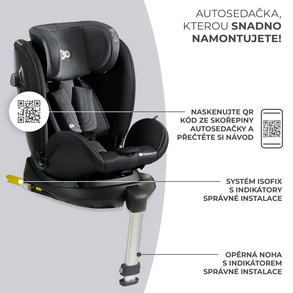 Detská autosedačka XRIDER i-Size sa vďaka systému ISOFIX a stabilizačnej nohe ľahko upevní do vášho auta. Upevnenie autosedačky v aute a kontrola, či indikátory bezpečnej montáže svietia zelenou farbou, trvá len chvíľu. Použitá oporná noha poskytuje tretí oporný bod, ktorý stabilizuje celú autosedačku počas ciest a kolízií. Nezabudnite, že návod na použitie musíte mať vždy po ruke. Stačí naskenovať QR kód na škrupine autosedačky. Elektronický návod na použitie bol vyvinutý s ohľadom na životné prostredie a vaše pohodlie.