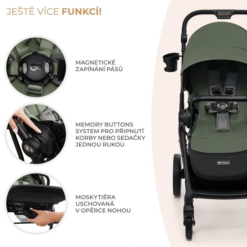 MEMORY BUTTONS SYSTEM umožňuje rýchlo odpojiť športový kočík a vaničku od rámu - len jednou rukou. Magnetická spona pásov uľahčuje zapínanie dieťaťa v kočíku. A pomocou priložených adaptérov môžete vytvoriť TRAVEL SYSTEM, ak máte detskú autosedačku.