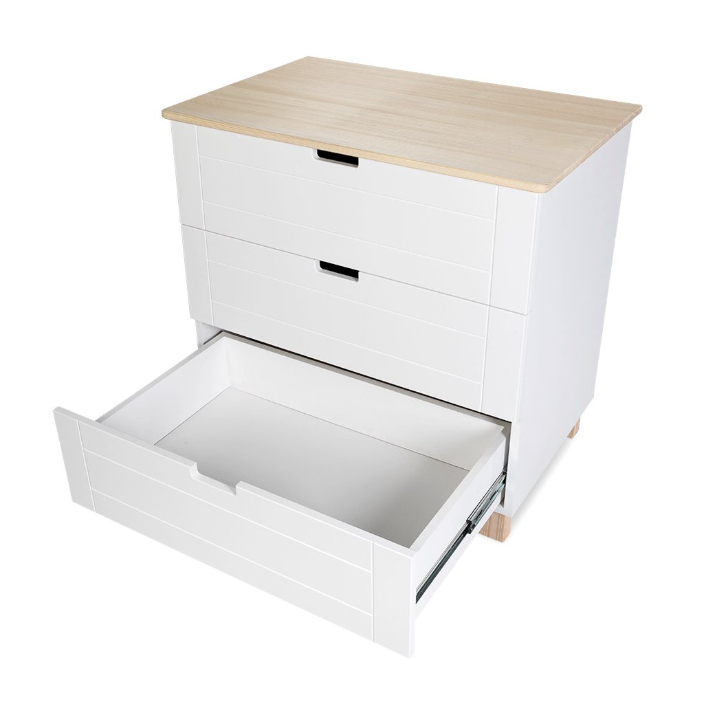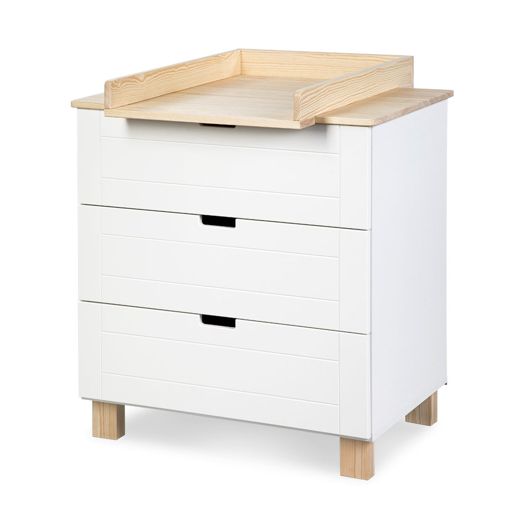 Vďaka nadčasovej bielej farbe v kombinácii s naturálnym drevom a klasickými úchytmi bude komoda IWO užitočná nielen pre bábätká. Odstránením prebaľovacieho pultu z komody získate kus nábytku, ktorý bude moderným a elegantným doplnkom nielen detskej izby.