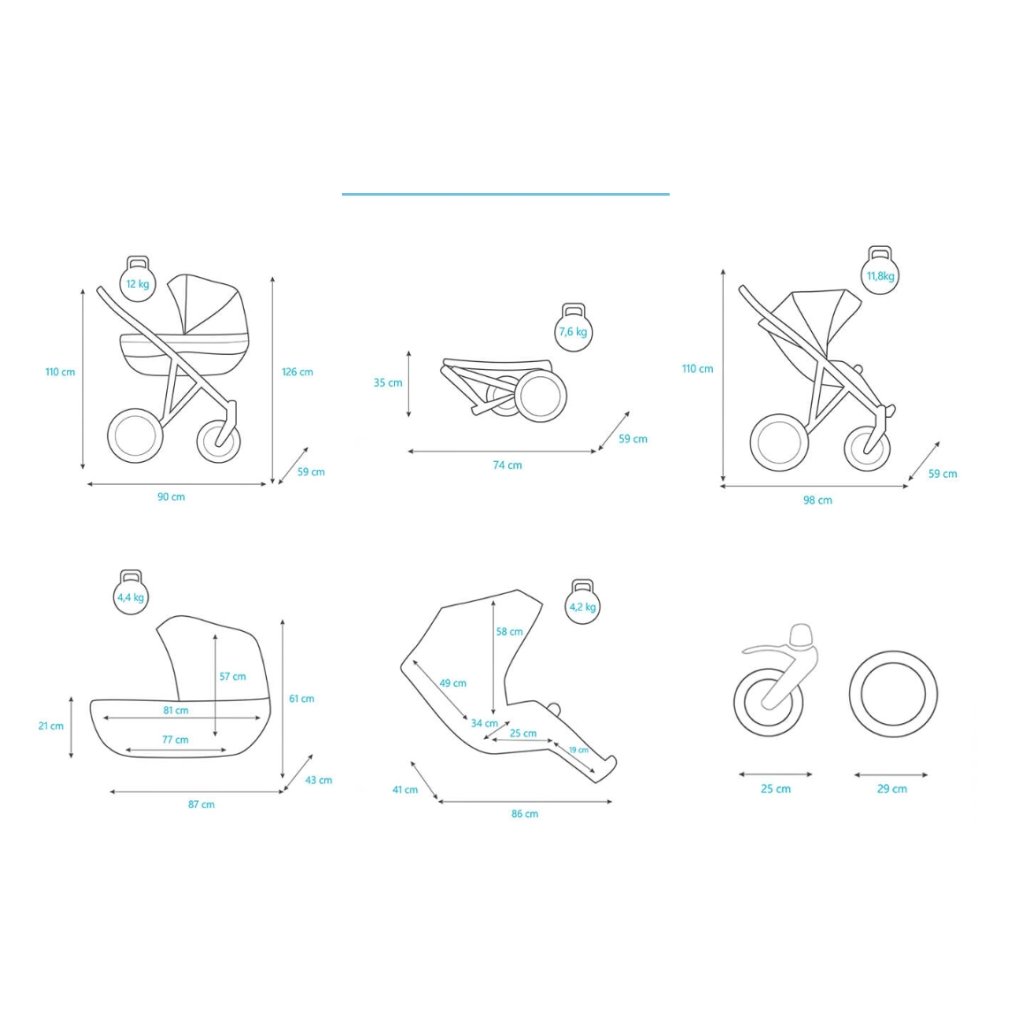 Predné kolesá s priemerom 25 cm a zadné kolesá s priemerom 29 cm Vám dávajú istotu, že sa s kočíkom bude dobre manipulovať na akomkoľvek povrchu. Je vhodný ako na prechádzky po asfaltových cestách, tak aj do náročnejších terénov, napríklad deravých chodníkoch alebo poľných cestách. Poradí si s jazdou po piesku, snehu alebo prejazdom cez obrubník.