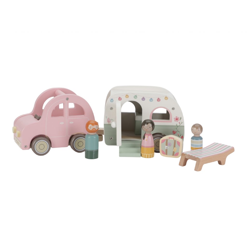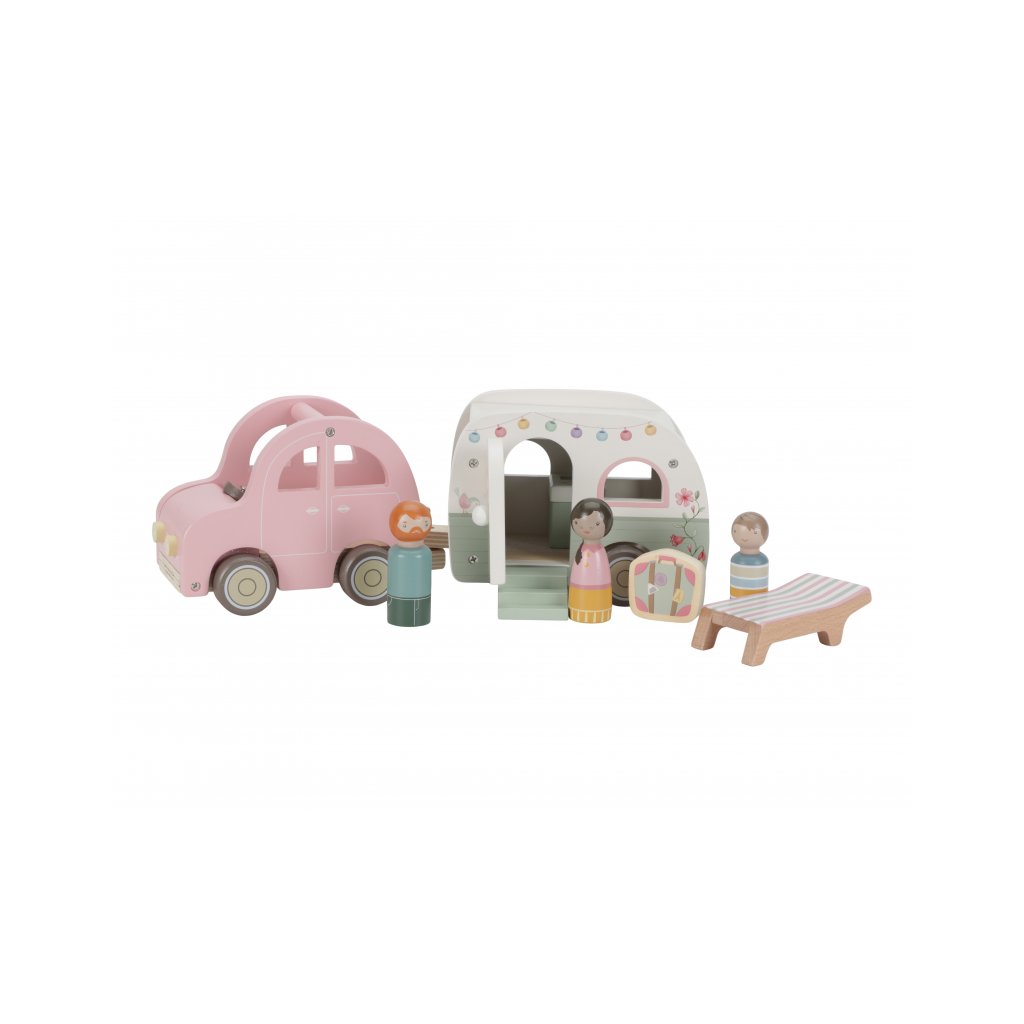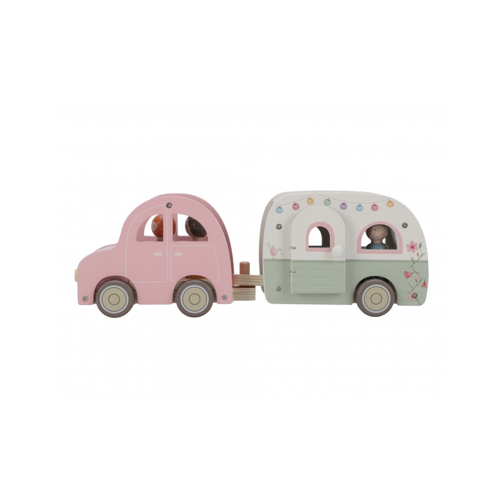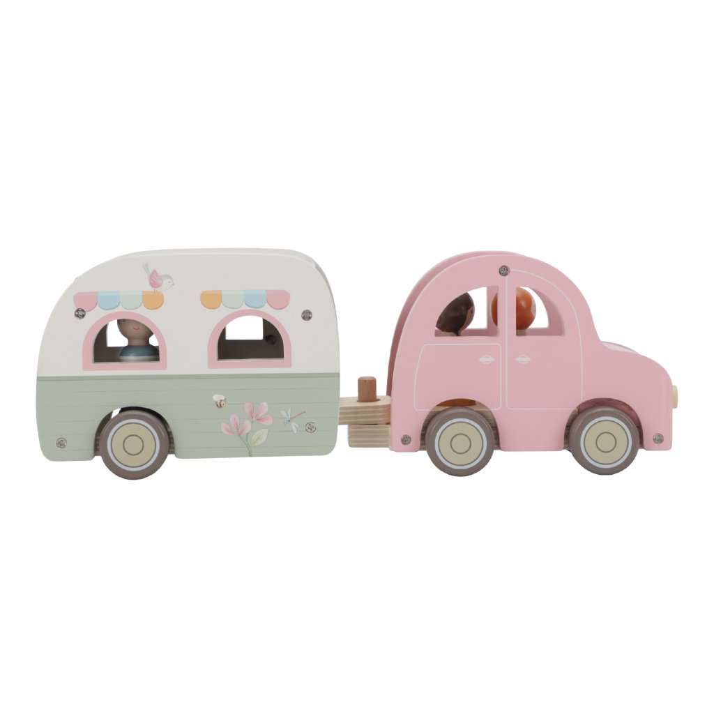 Rozkošné ružové auto s karavanom v kvalitnom drevenom prevedení dovezie celú rodinku za prázdninovým dobrodružstvom. Karavan má odnímateľnú strechu a otváracie dvere, aby bolo možné rodinku aj vybavenie dovnútra ľahko umiestniť.