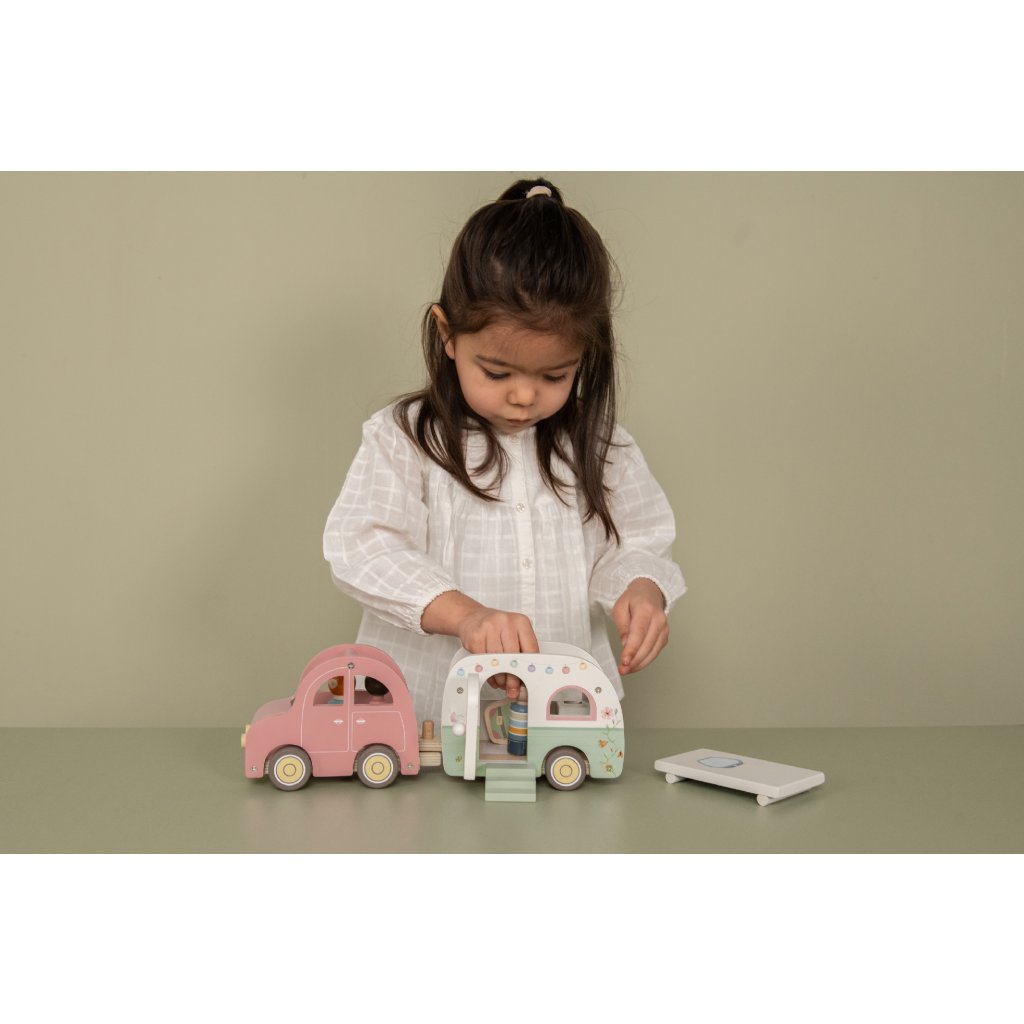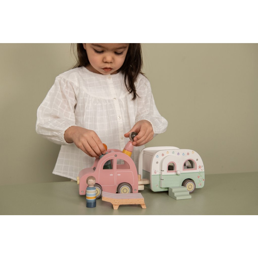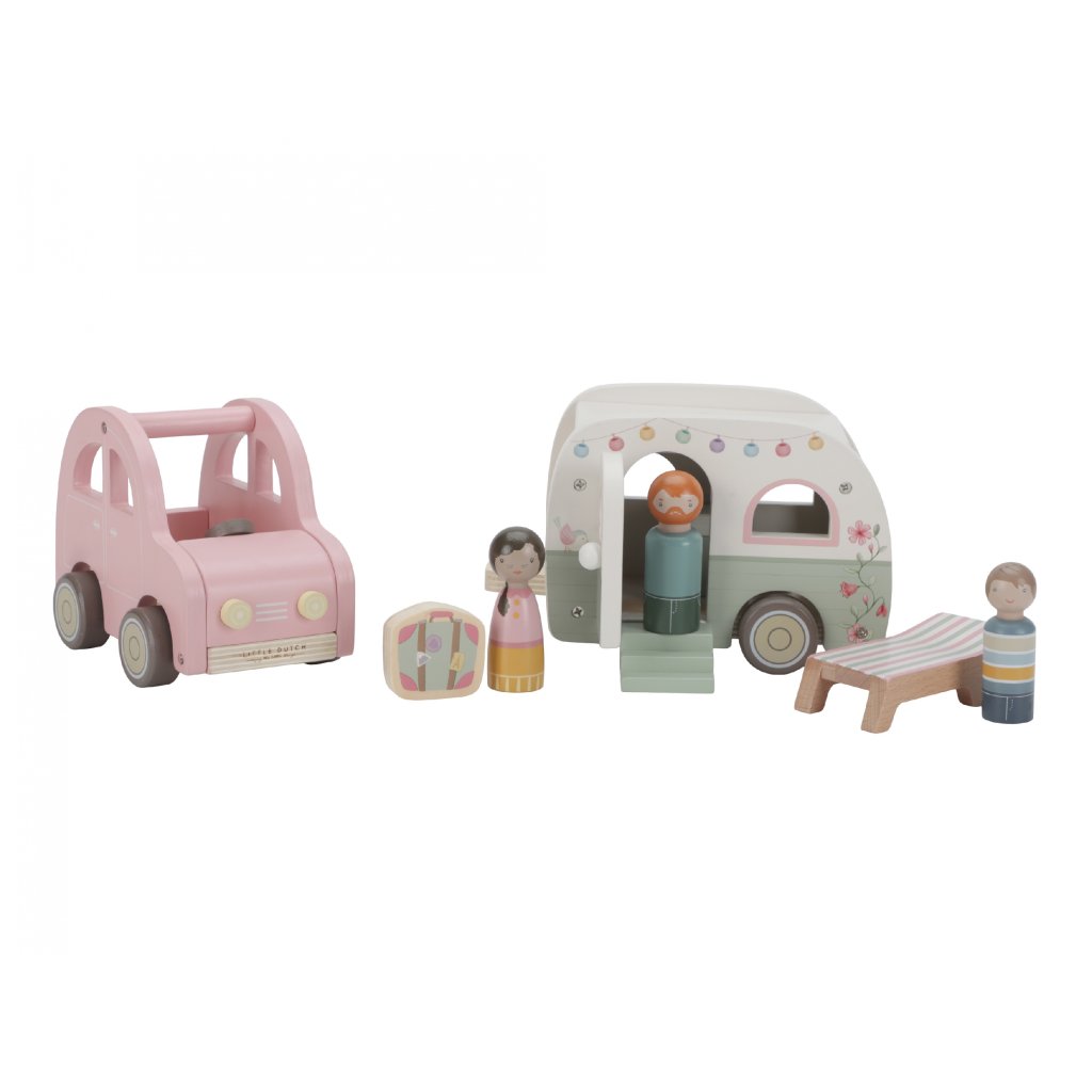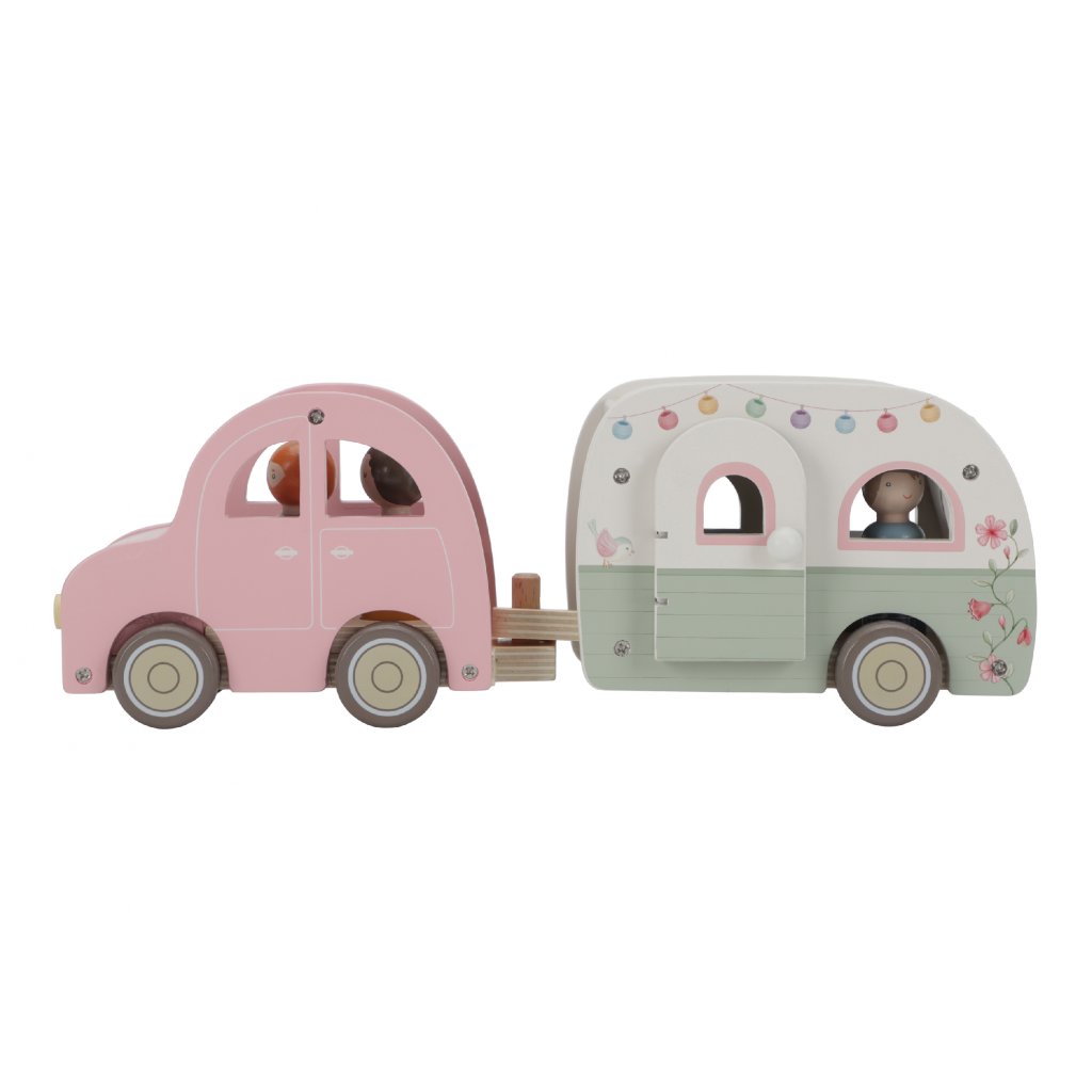 Rozkošné ružové auto s karavanom v kvalitnom drevenom prevedení dovezie celú rodinku za prázdninovým dobrodružstvom. Karavan má odnímateľnú strechu a otváracie dvere, aby bolo možné rodinku aj vybavenie dovnútra ľahko umiestniť.