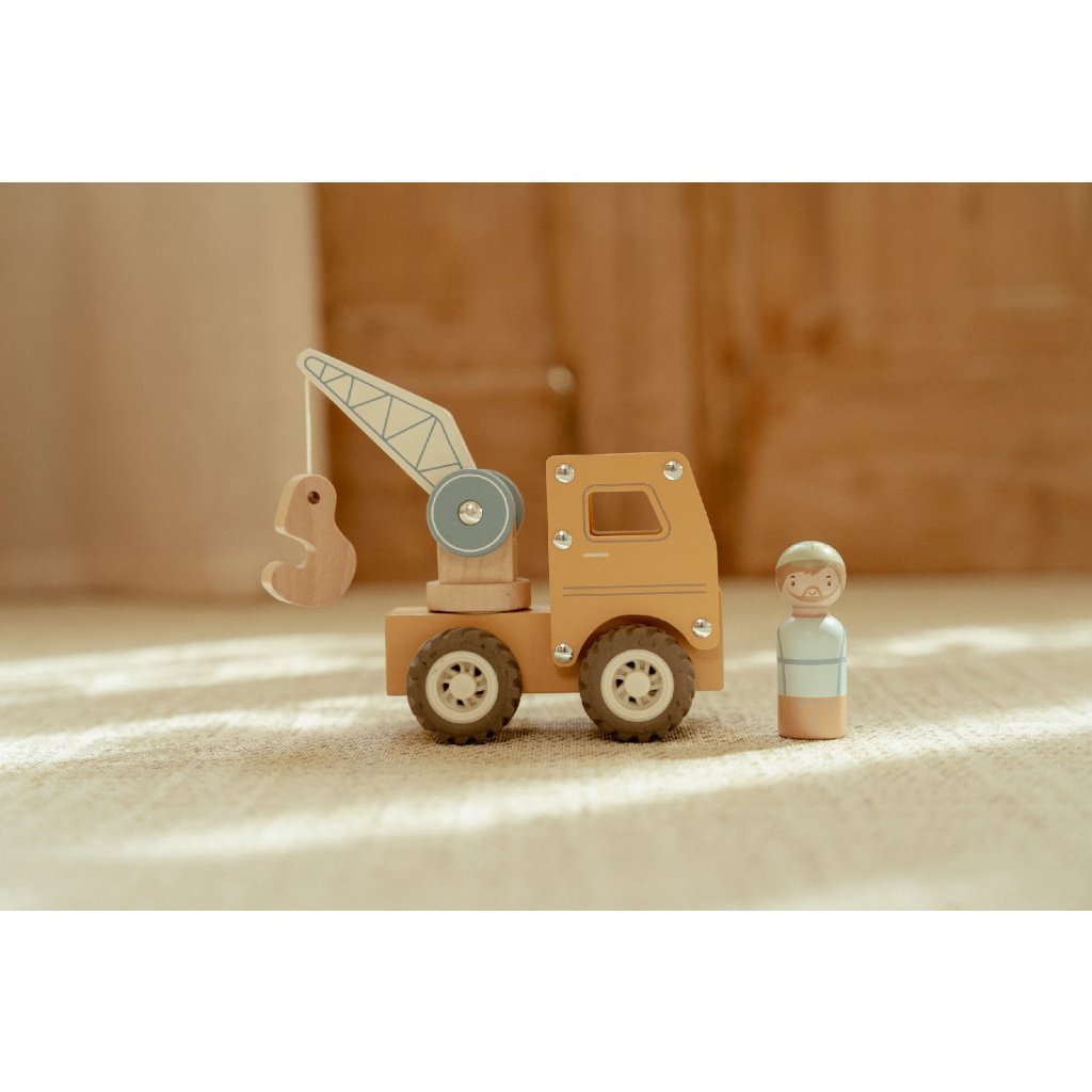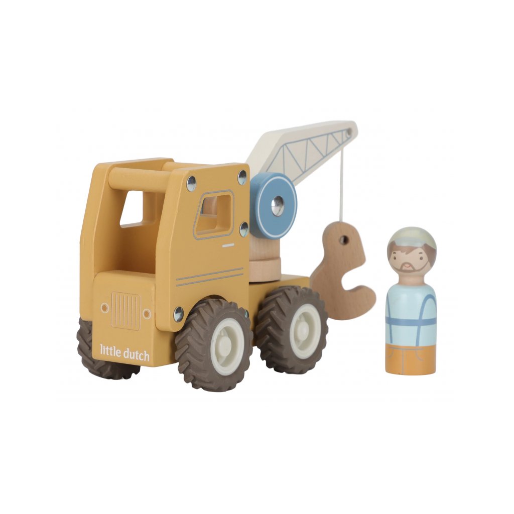 Súčasťou je aj drevená figúrka stavbára, ktorá dodáva hre realistický rozmer. Autožeriav môžete kombinovať s ďalšími stavebnými vozidlami - napríklad s nakladačom, miešačkou alebo sklápačkou - pre kompletné stavebné dobrodružstvo.