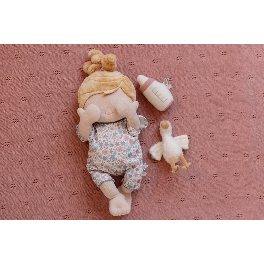 Nežná plyšová bábika Julia z mäkkého jemného materiálu je pripravená na spanie, oblečená do pyžamka, vybavená fľaštičkou a plyšovou hračkou. Je vhodná na hranie aj maznanie a bude sa s ňou aj krásne zaspávať!