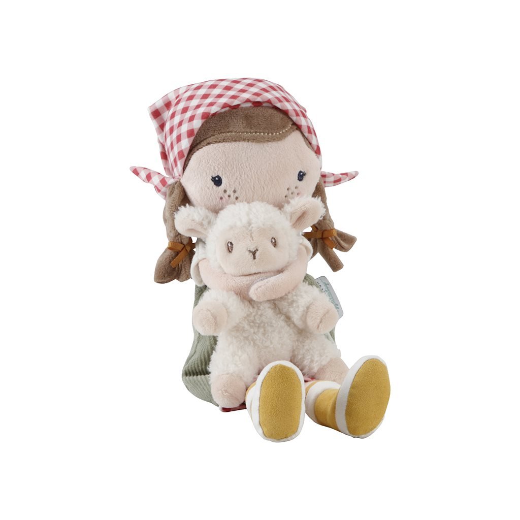 Rozkošná plyšová bábika v podobe farmárky Rose v šatách so zásterkou a s ovečkou v ruke. Bábika z mäkkého jemného materiálu je ideálna ako prvá bábika pre vaše dieťa, je vhodná na hranie aj maznanie a bude sa s ňou aj krásne zaspávať!