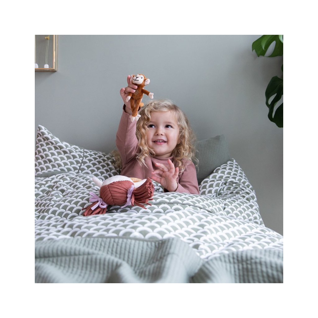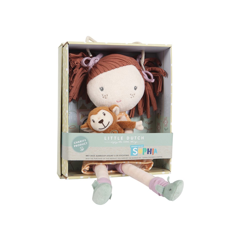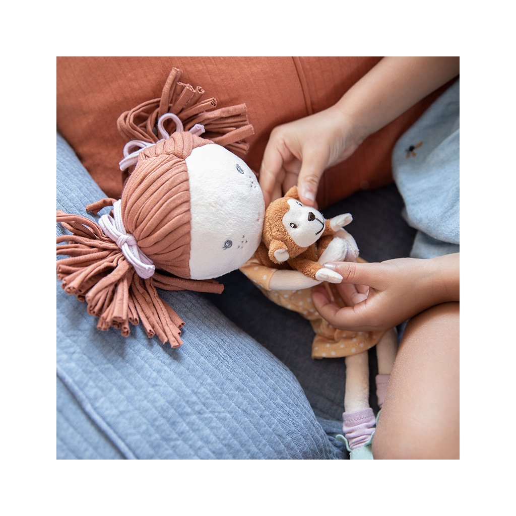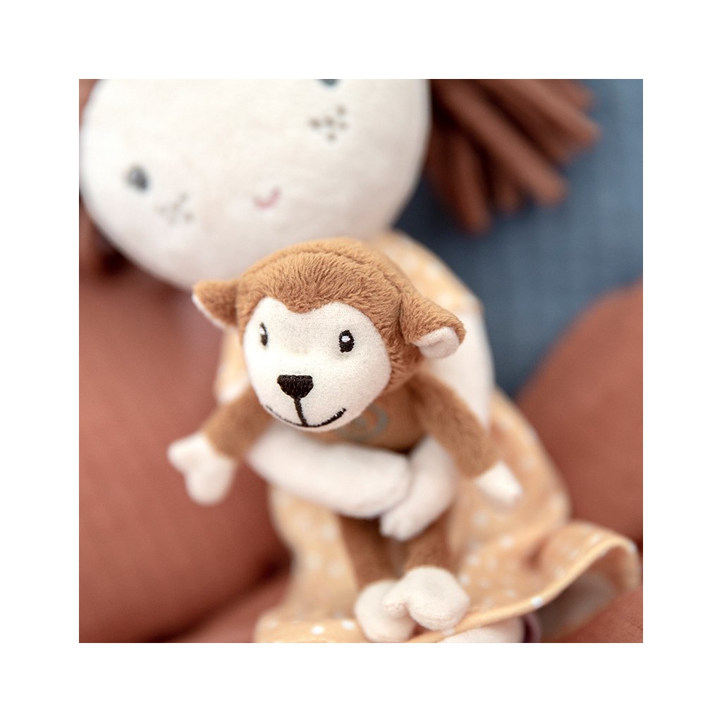 Nežná plyšová bábika Sofia z mäkkého jemného materiálu je ideálna ako prvá bábika pre vaše dieťa. Bábika drží v ruke malú plyšovú opičku, pripevnenú suchým zipsom. Bábika je vhodná na hranie aj maznanie a bude sa s ňou aj krásne zaspávať!
