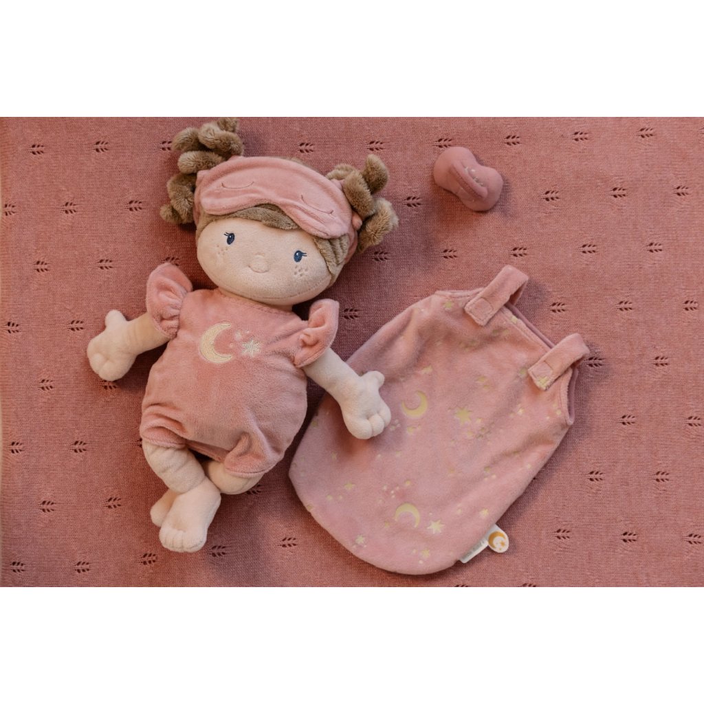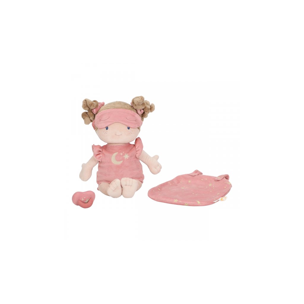 Nežná plyšová bábika Rosa z mäkkého jemného materiálu je pripravená na spanie, oblečená do pyžamka, vybavená plienkou, spacím vakom, cumlíkom aj clonou na oči. Je vhodná na hranie aj maznanie a bude sa s ňou aj krásne zaspávať!