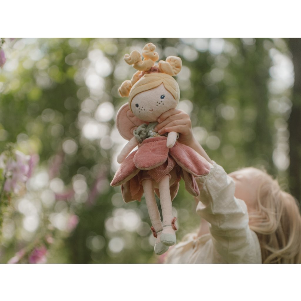 Bábika dodávaná v krásnom darčekovom boxe je súčasťou dizajnovej kolekcie hračiek a doplnkov Little Dutch Fairy Garden inšpirovanej životom na záhrade.