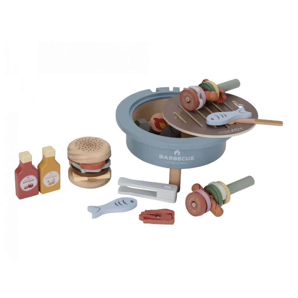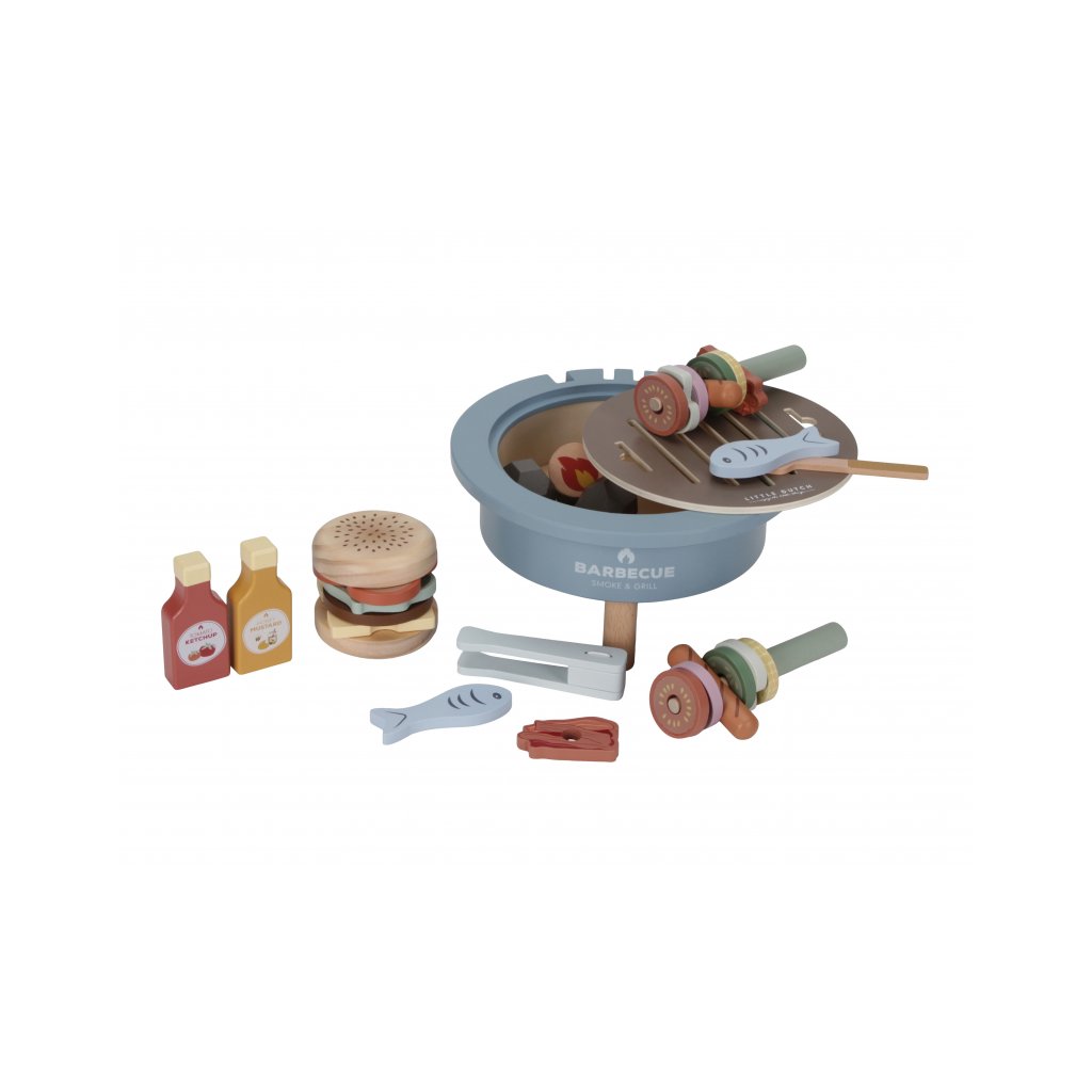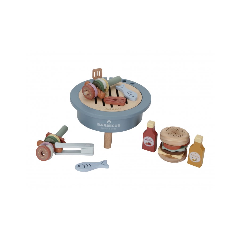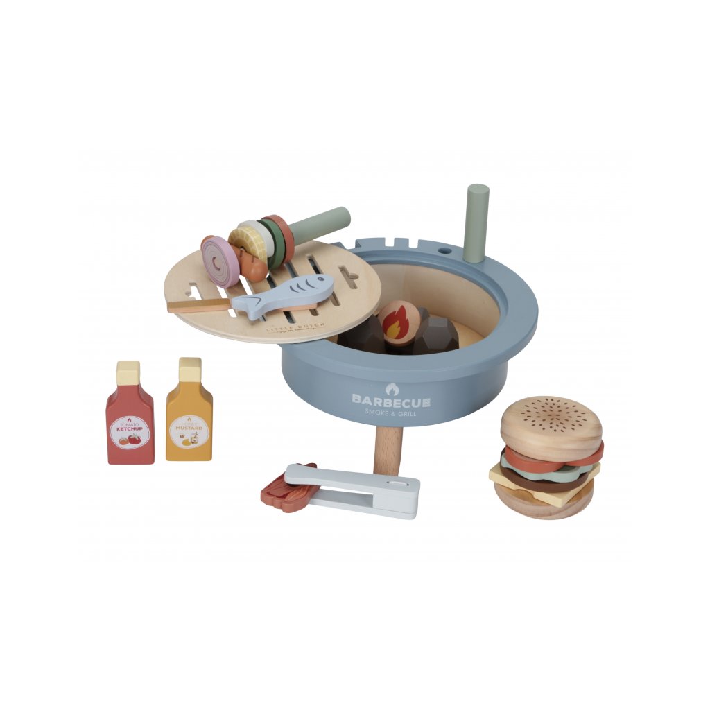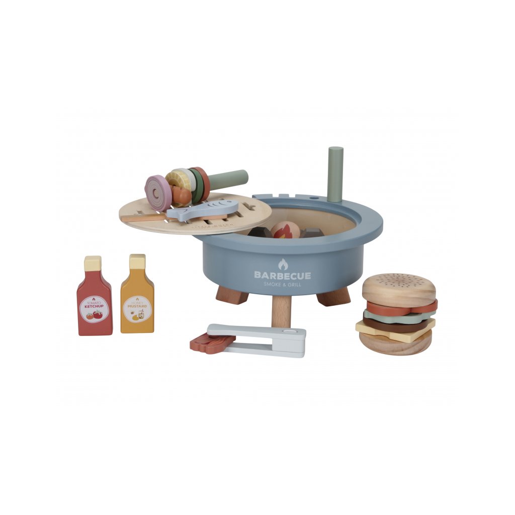 S touto bohato vybavenou sadou na grilovanie má váš malý kuchár či kuchárka po ruke všetko potrebné na prípravu letnej barbecue party. Dali by ste si zelenino-mäsový špíz, hamburger alebo grilovanú rybu? Než si vyberiete, na čo máte chuť, váš kuchár či kuchárka naplní gril dreveným uhlím, aby sa gril správne nahrial.