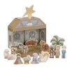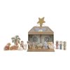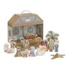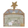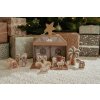 Krásny betlehem s postavami z tradičného vianočného príbehu poteší vás aj vaše deti každé Vianoce. 14 postavičiek je vyrobených z dreva, chliev z kvalitného pevného kartónu slúži aj ako prenosný a úložný kufrík.