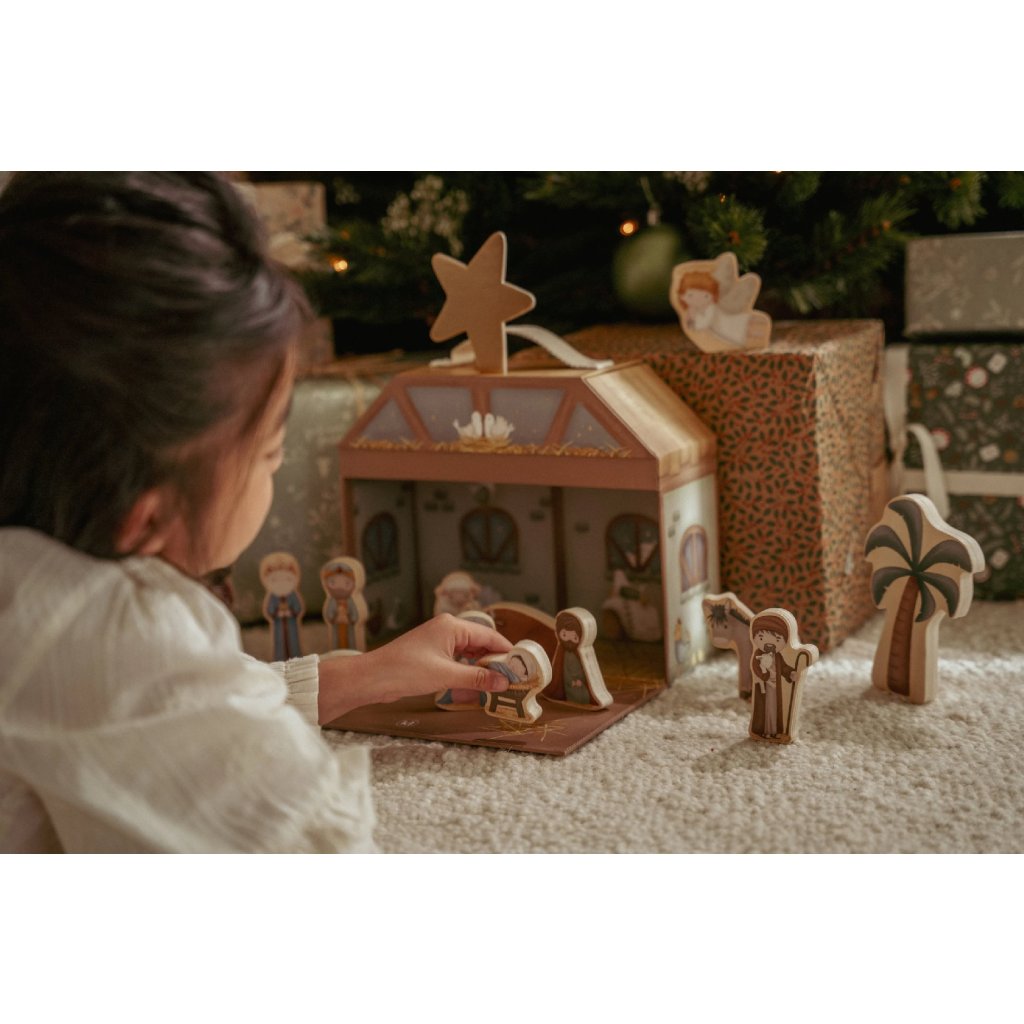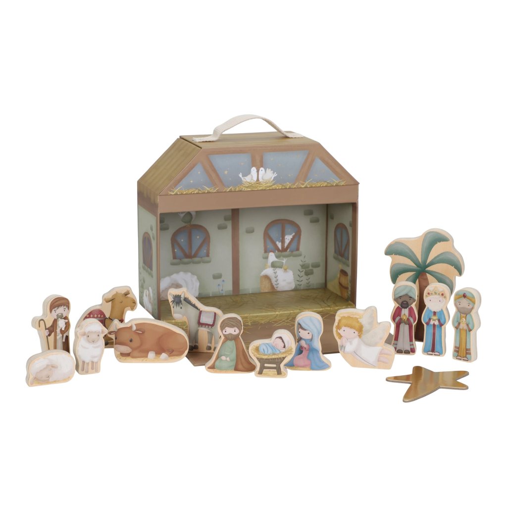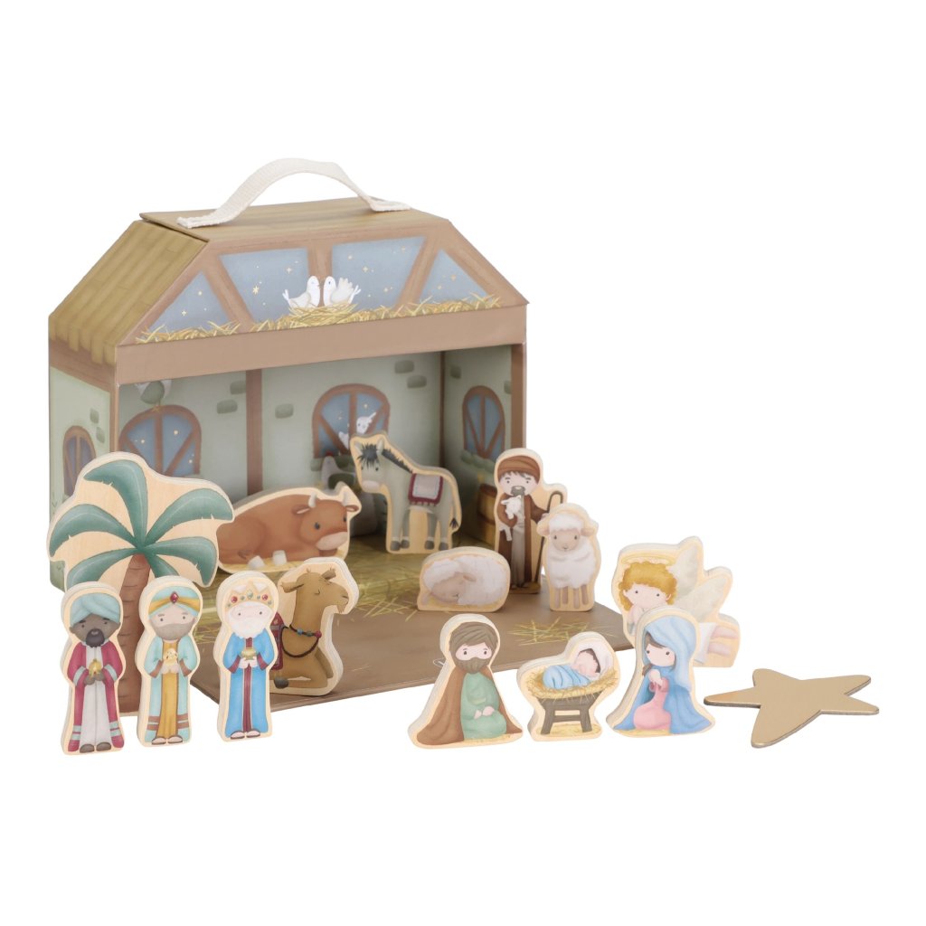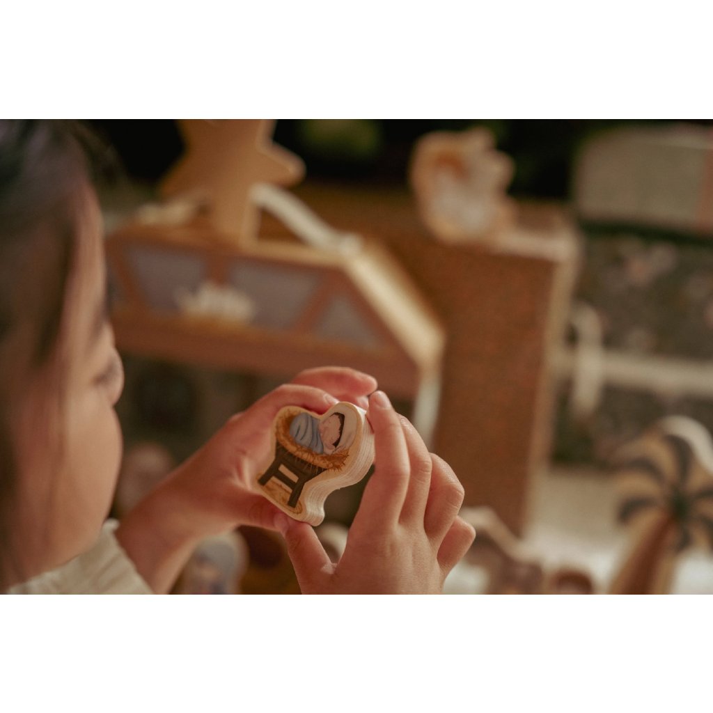 Krásny betlehem s postavami z tradičného vianočného príbehu poteší vás aj vaše deti každé Vianoce. 14 postavičiek je vyrobených z dreva, chliev z kvalitného pevného kartónu slúži aj ako prenosný a úložný kufrík.