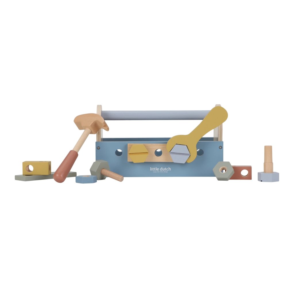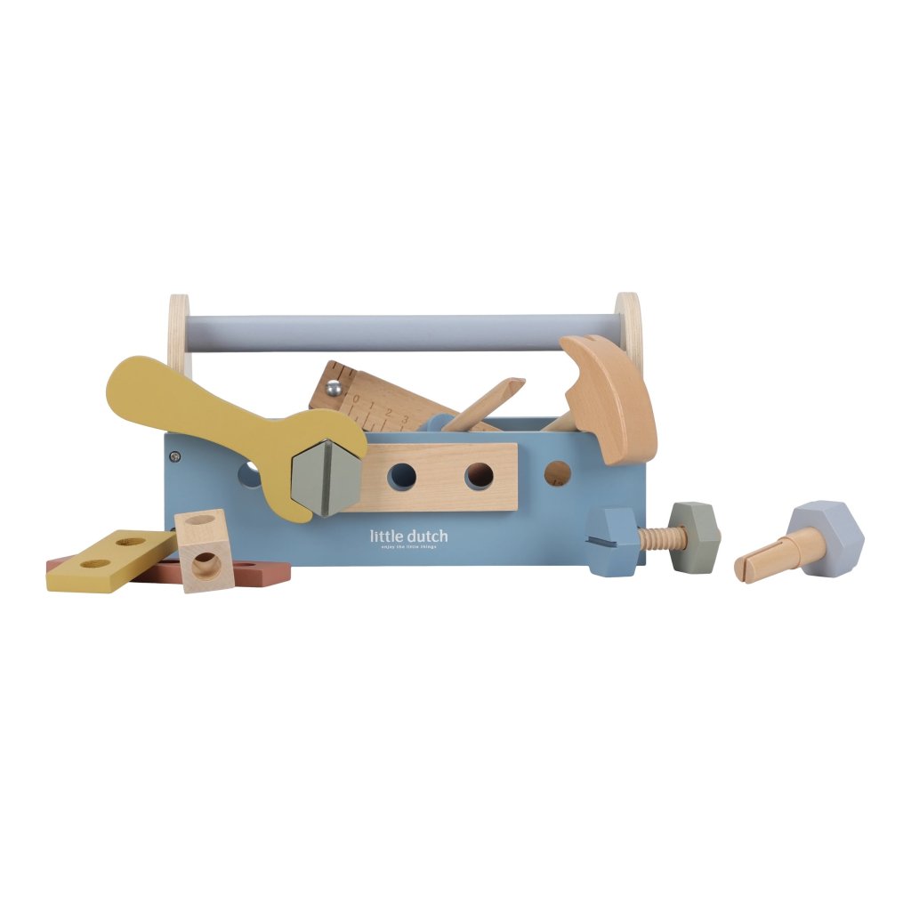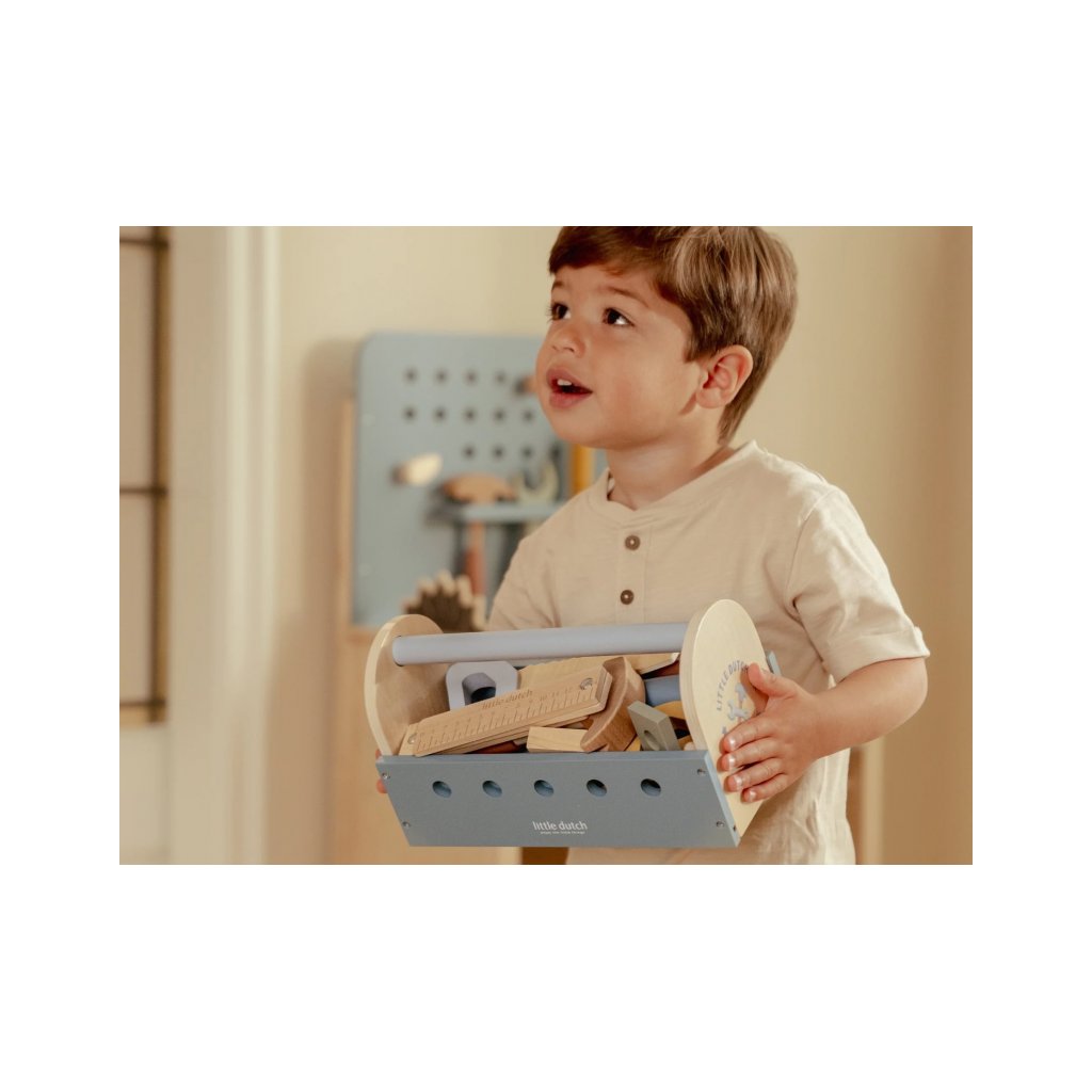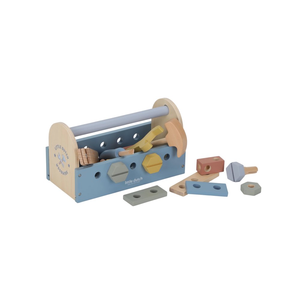 S touto sadou dreveného náradia v praktickom prenosnom boxe zvládne vaše dieťa opraviť doma všetko, čo je potrebné. Po ruke bude mať skrutkovač, kladivko aj francúzsky kľúč. V boxe sú aj skrutky, matice a panely s otvormi na tréning zručnosti. Box na náradie môže slúžiť aj ako zatĺkačka.