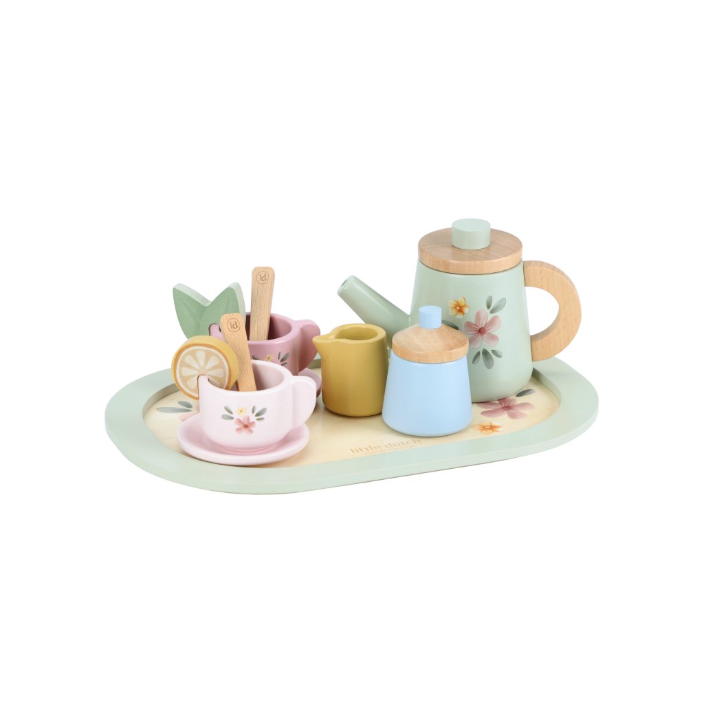 Little Dutch Čajový set drevený s kvetinovou potlačou