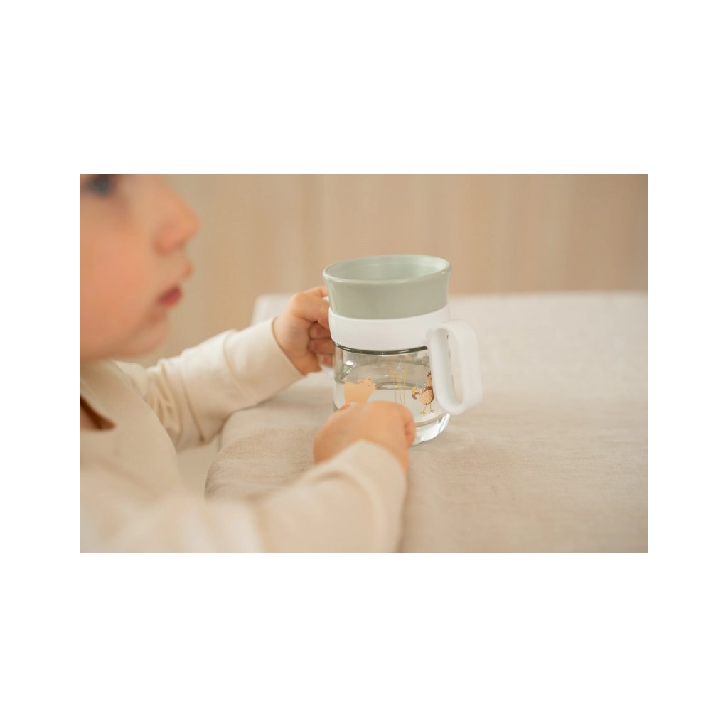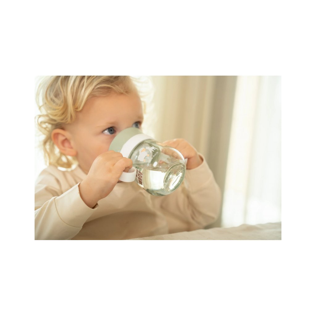 Trénovací hrnček 200 ml je ideálny pre deti, ktoré sa učia piť z klasického hrnčeka. Silikónové viečko so systémom 360° umožňuje piť z ktoréhokoľvek miesta po obvode hrnčeka bez rizika rozliatia. Tekutina tečie z hrnčeka po naklonení k ústam dieťaťa kontrolovaným spôsobom, takže dieťa na seba pri pití obsah hrnčeka nevyleje. Keď piť prestane, hrnček sa vďaka špeciálnej membráne automaticky uzavrie. Držadlá uľahčujú držanie hrnčeka malými detskými ručičkami.