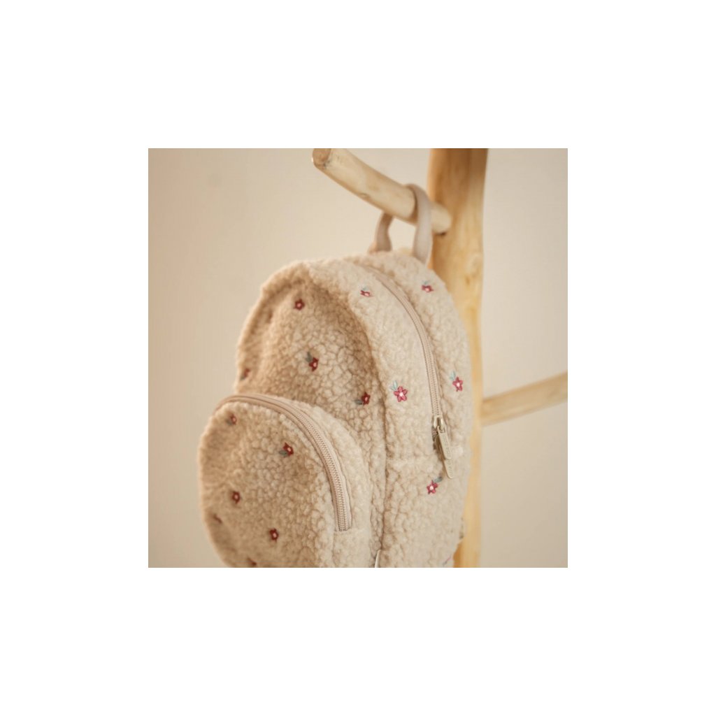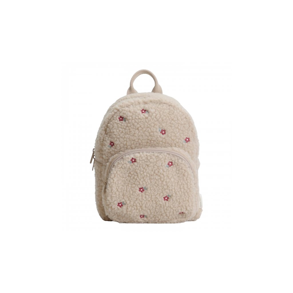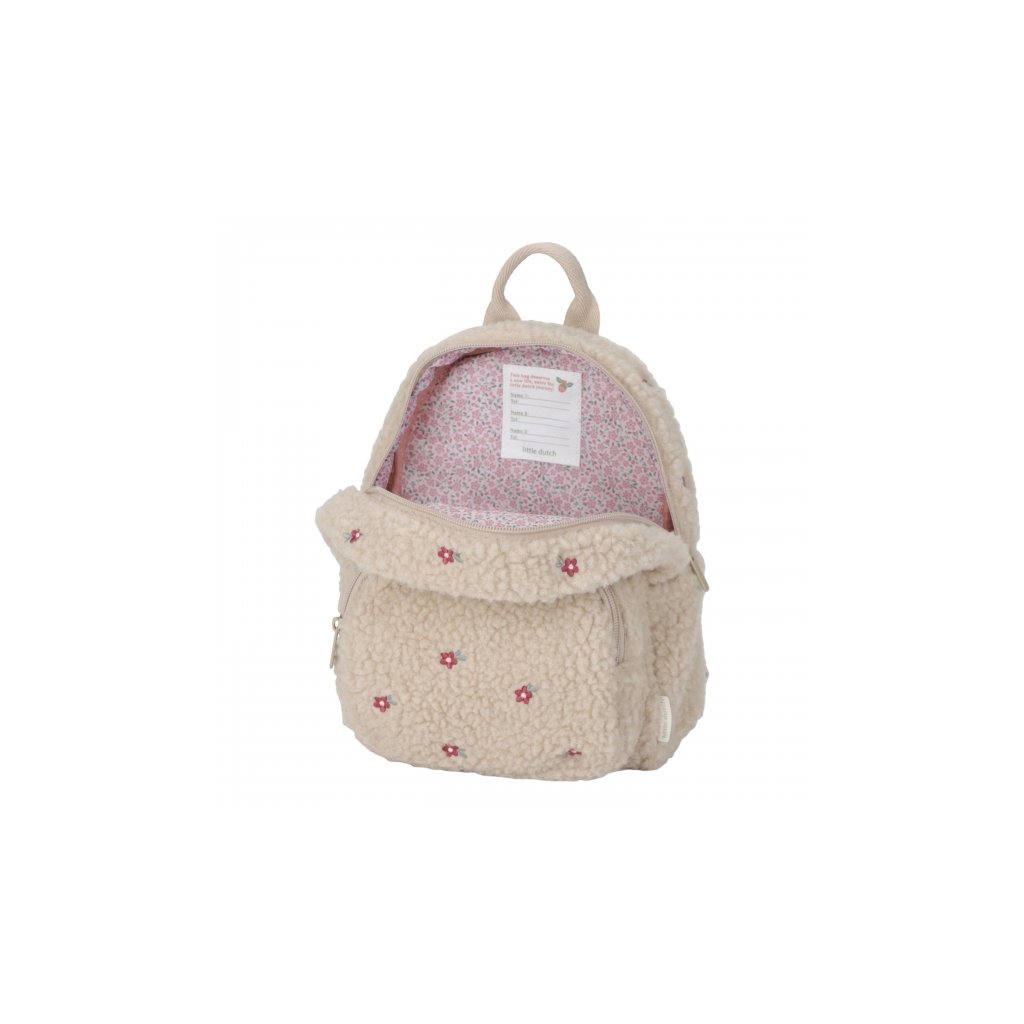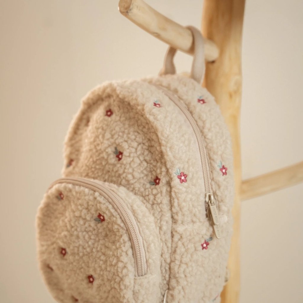 Rozkošný detský batoh z mäkkého plyšového materiálu s kvetinovou výšivkou je ideálnym doplnkom na výlety do prírody i prechádzky mestom. Batoh má nastaviteľné ramenné popruhy a hrudný pás na príjemné nosenie. Držadlo umožňuje prenášanie v ruke. Batoh je vybavený vonkajším vreckom na zips na uloženie drobností a vnútorný priestor s vreckom, elastickým držiakom na pitie a menovkou.
