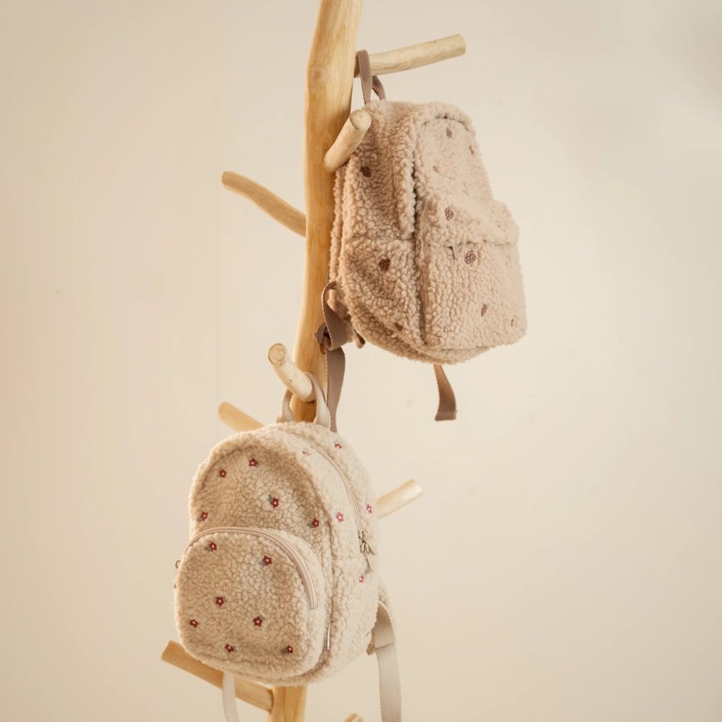 Rozkošný detský batoh z mäkkého plyšového materiálu s kvetinovou výšivkou je ideálnym doplnkom na výlety do prírody i prechádzky mestom. Batoh má nastaviteľné ramenné popruhy a hrudný pás na príjemné nosenie. Držadlo umožňuje prenášanie v ruke. Batoh je vybavený vonkajším vreckom na zips na uloženie drobností a vnútorný priestor s vreckom, elastickým držiakom na pitie a menovkou.