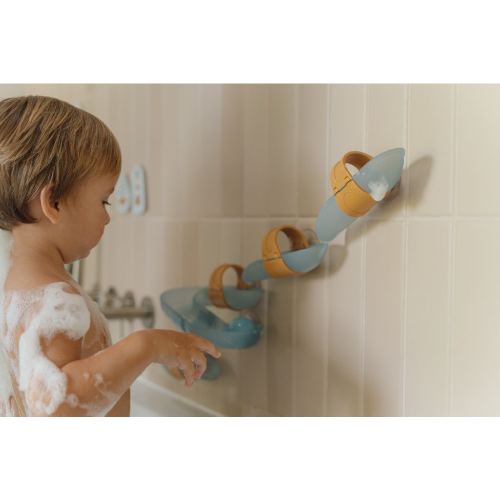 Kúpanie bude ešte zábavnejšie s touto špeciálnou guličkovou dráhou do vane. Dráhu ľahko pripevníte na vaňu či dlaždičky s pomocou prísaviek, ktoré umožňujú aj jej ľahké zloženie po kúpeli. Sledujte spoločne s vašim dieťaťom, ako sa loptičky kotúľajú dole jeden za druhým, až na konci padnú do vody.