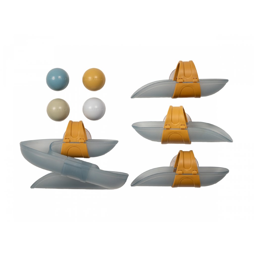 Súprava obsahuje 4 diely dráhy a 4 loptičky.