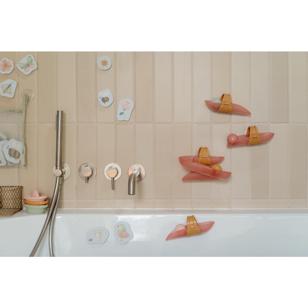 Kúpanie bude ešte zábavnejšie s touto špeciálnou guličkovou dráhou do vane. Dráhu ľahko pripevníte na vaňu či dlaždičky s pomocou prísaviek, ktoré umožňujú aj jej ľahké zloženie po kúpeli. Sledujte spoločne s vašim dieťaťom, ako sa loptičky kotúľajú dole jeden za druhým, až na konci padnú do vody.