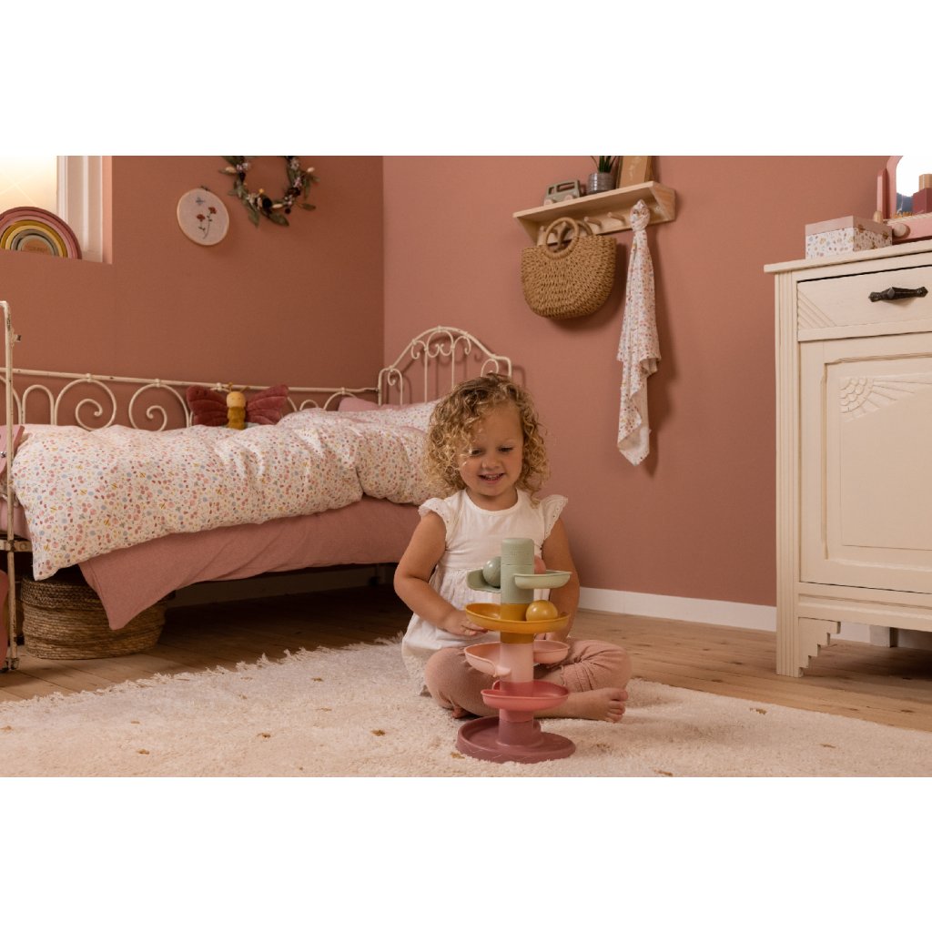 Sledujte s vašim dieťaťom, ako sa loptičky kotúľajú dookola jedna za druhou! Dráhu v jemných pastelových farbách ľahko zostavíte z piatich dielov a zábava môže začať.