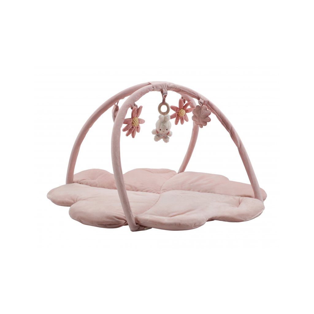 Mäkká hracia deka v tvare štvorlístka s hrazdou, na ktorej sú zavesené hračky v podobe králika Miffy, kvietkov a lístkov. Pri skúmaní hračiek upúta pozornosť dieťaťa hrkanie, šušťanie, pískanie i zvonenie. Hračky sú odnímateľné a je možné ich používať aj samostatne.