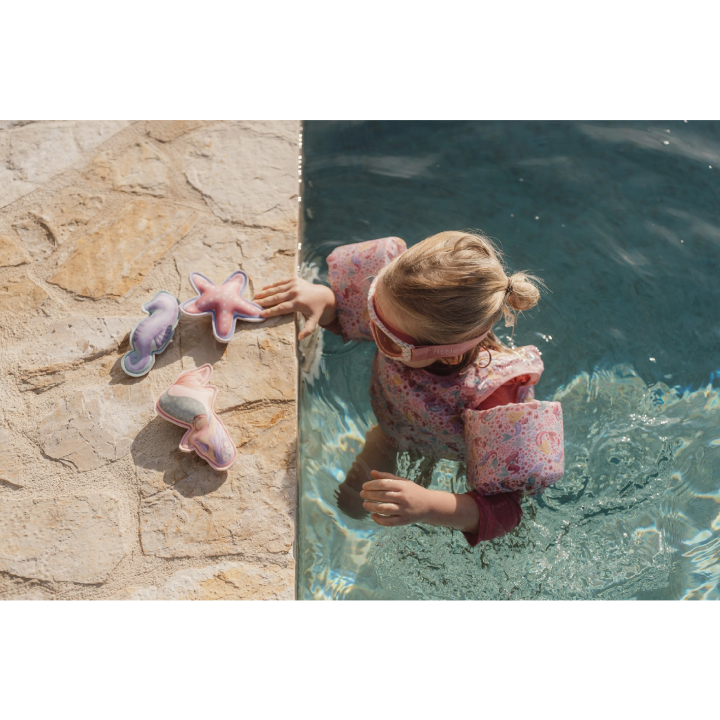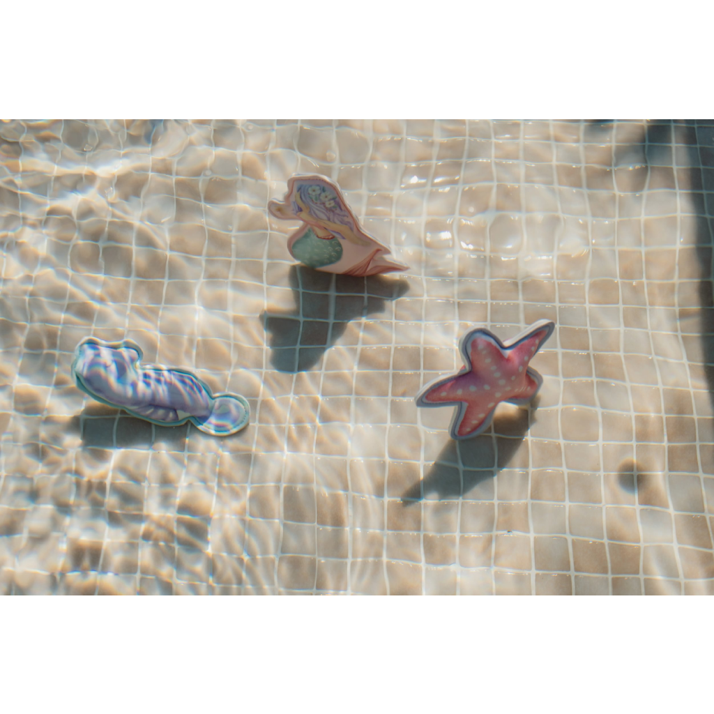 Nechajte svoje dieťa potápať sa a hľadať pod hladinou krásne farebné hračky v podobe morskej víly, morského koníka a hviezdice. Hračky z mäkkého neoprénu pomaly klesajú ku dnu a sú ideálne na bezpečný tréning vo vode.