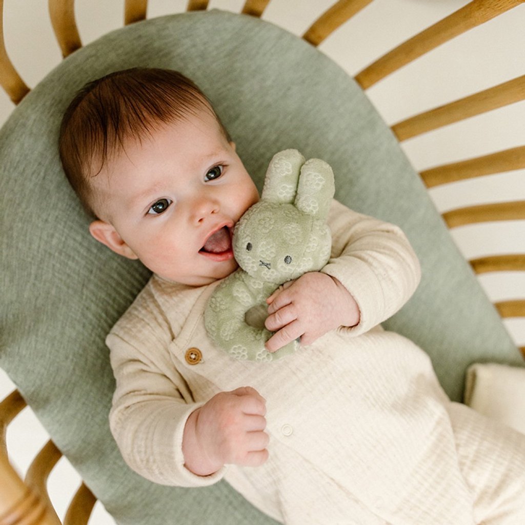 Rozkošná hrkálka s králikom z jemného plyšu je prispôsobené malým detským ručičkám. Hračka podporuje zmysly a zvedavosť dieťaťa a jeho jemnú motoriku.